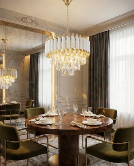 Styl glamour — kryształowe żyrandole, modele z metalowymi elementami w kolorze złota lub srebra