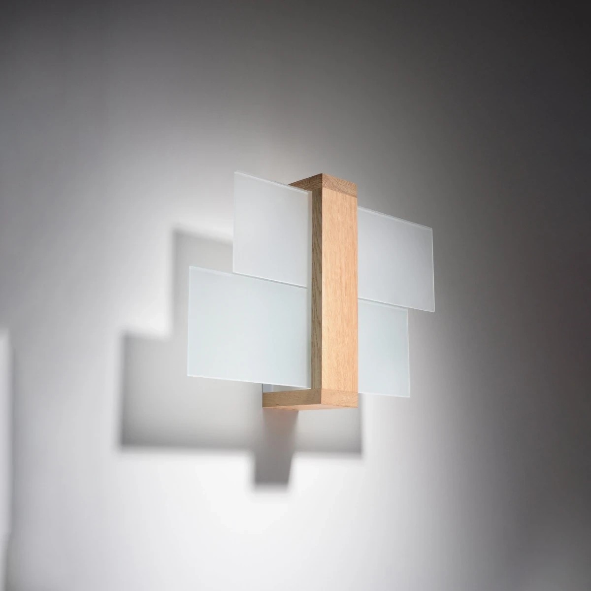 Matowy, szklany klosz drewnianej lampy ściennej doskonale rozprasza światło, dzięki czemu dociera ono we wszystkie zakątki pomieszczenia, a Ty z łatwością uzyskujesz pożądany efekt wizualny.