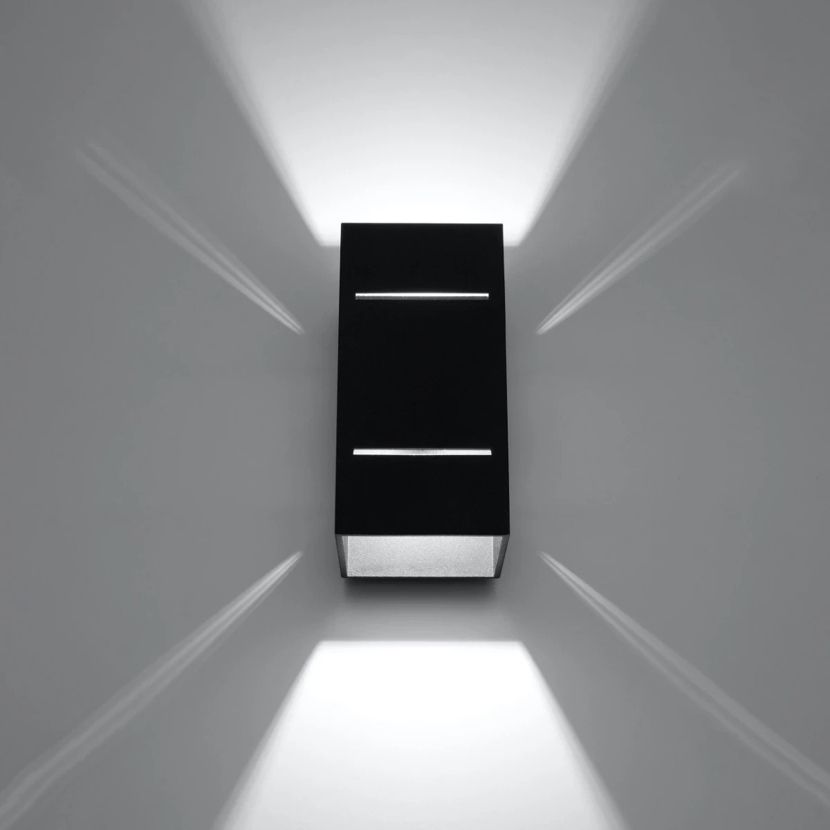 Światło rozchodzi się z kinkietu BLOCCO w górę i w dół oraz sączy się przez liniową perforację w bocznych ścianach klosza. Gdy go zaświecisz, zamienisz całą ścianę w efektowną dekorację.