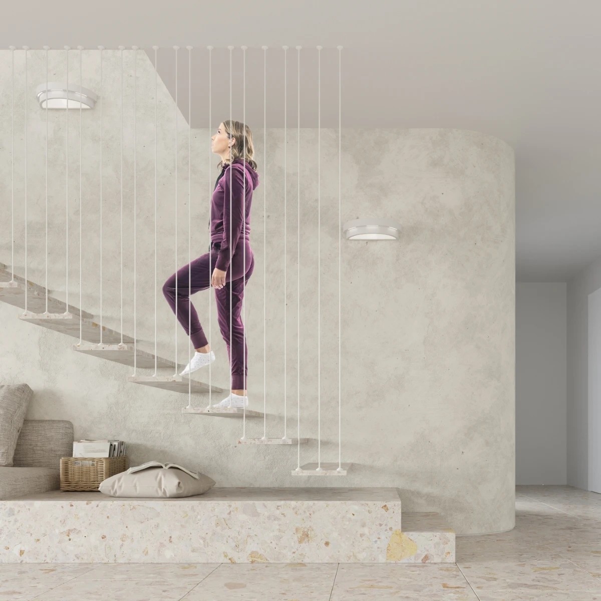 Światło w kinkiecie rozchodzi się górą i dołem, a obudowa z białej, matowej ceramiki w połączeniu z podświetlaną powierzchnią tworzy piękną wizualną kompozycję. Kinkiet świetnie zaprezentuje się w nowoczesnych wnętrzach, zachwycając swoją lekkością i zgrabnym kształtem.
