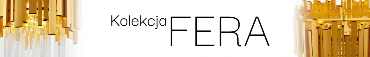 Kolekcja FERA obejmuje wyszukane kinkiety i żyrandole, w których eleganckie złote elementy łączą się z transparentnymi, szlifowanymi kryształami. Modele są dostępne w wariantach: złoty i czarno-złoty. To linia zaprojektowana z myślą o wnętrzach, w których liczy się estetyka i mocny wizualny akcent — od salonów glamour, przez nowoczesne przestrzenie, po wysmakowane aranżacje modern classic i art deco.