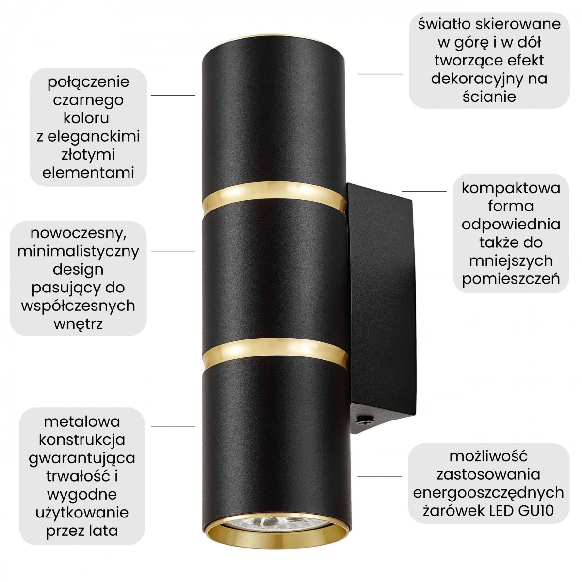 Projektując czarny kinkiet ASTI, chcieliśmy połączyć nowoczesny wygląd z wysoką funkcjonalnością. Wybraliśmy metalową tubę o wysokości 18 cm i średnicy 5,5 cm, aby stworzyć oprawę, która zmieści się nawet w bardzo ograniczonych metrażach, nie tracąc na wydajności. Dwa punkty świetlne skierowaliśmy w przeciwne strony, przez co lampa realizuje dwa zadania. Oświetla konkretną strefę i wprowadza przyjemne światło na wieczorne chwile.