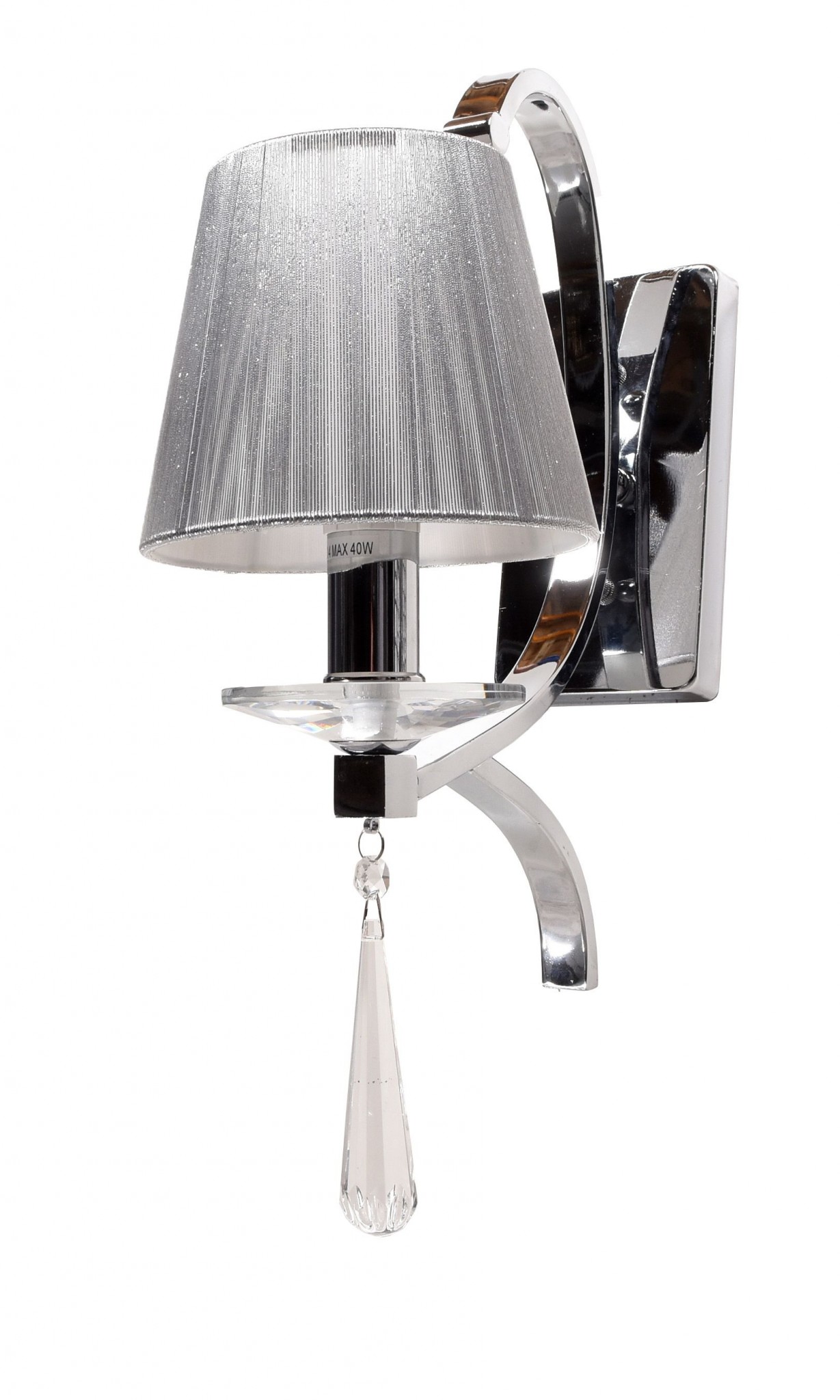 Wśród oświetlenia serii VENISIA znaleźć można lampy o różnorodnej wielkości, które udekorowane są urokliwymi kryształami o wyjątkowym charakterze i doskonałej jakości. Prezentowany kinkiet posiada jedno źródło światła, które wypływa z materiałowego, niemal przezroczystego klosza. Całość umieszczona jest na metalowej oprawie składającej się z dwóch wystających z podsufitki ramion. Z górnej, jak i z dolnej części oprawy zwisają subtelne kryształowe ozdoby. Lampa ścienna daje subtelny blask, tworząc tym samym klimatyczne wnętrze.
