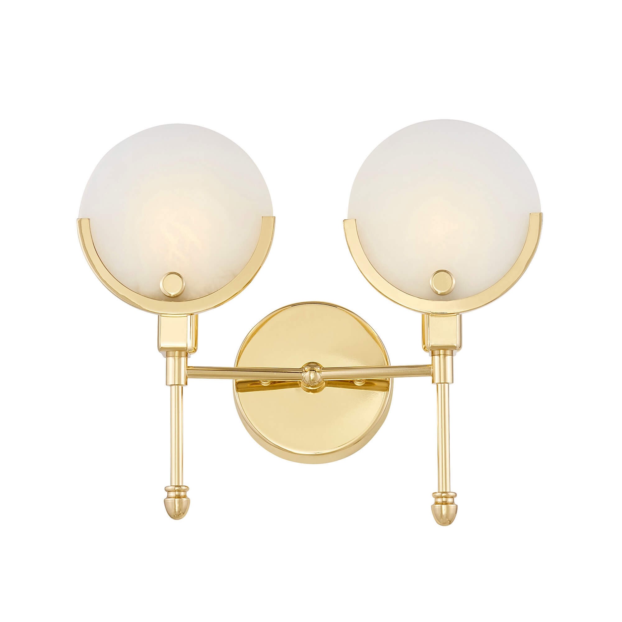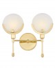 Elegancja oraz fantazja kolekcji MONTEGO wynika przede wszystkim z zastosowanych w projekcie rozwiązań, bazy konstrukcyjnej oraz wysokiej jakości materiałów, z których powstał jej produkt. Dostrzegalne w lampie ściennej są przede wszystkim jej ciepły, a zarazem wysublimowany kolor złota, pokrywający większą część kinkietu oraz bryły dwóch, wykonanych z kremowego szkła, kloszy. Okrągła podsufitka to jedyny element o stosunkowo prostej konstrukcji, który od razu został przełamany interesującym sposobem zamontowania ramion. Ich kształt bazuje dość mocno na stylu art deco, tworząc wymyślną dekorację stworzoną z prostych elementów. Na uwagę zasługują także płaskie, szklane klosze osadzone na złotym, metalowym półokręgu, których jedyną ozdobą jest okrągły detal w dolnej ich części.