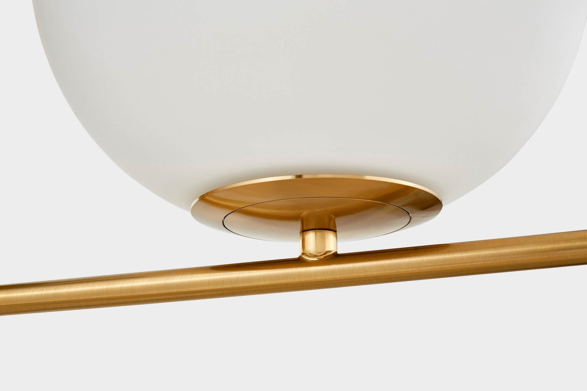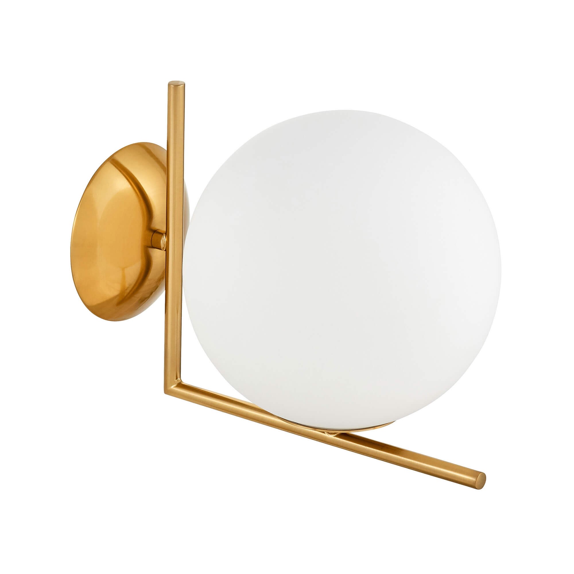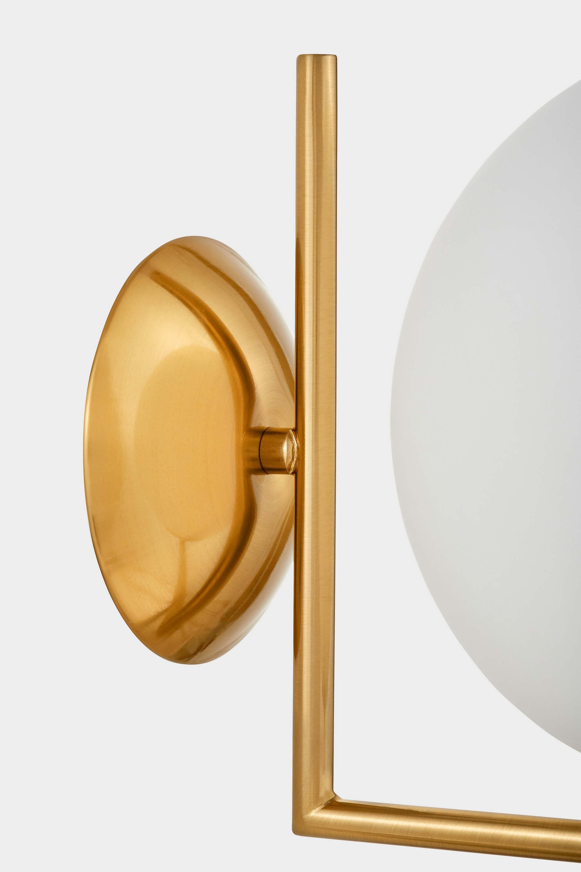 Skromne w swej postaci produkty z linii SORENTO to niepozorne kinkiety, których światło pozwoli na doświetlenie zarówno dużych, jak i małych przestrzeni. Powstały one z zajmującego większość kompozycji szklanego klosza w kształcie sporej, mlecznobiałej kuli. Osadzono go na metalowej konstrukcji, w skład której wchodzi płaska, okrągła podstawa pod oprawę, mały metalowy łącznik przymocowany do ramienia oraz okrągły dysk pełniący rolę mocowania ze ścianą. Wyjątkowe, choć jednocześnie bardzo surowe w swej postaci, wręcz ascetyczne, jest ramię lampy, będące zagiętą pod kątem prostym rurką wyznaczającą ramy wielkościowe lampy zarówno górne, jak i boczne. Mosiądz, pokrywający wszystkie elementy, w tym właśnie ramię, doskonale współgra z delikatnością bieli klosza i powoduje, że lampa ścienna nabiera zmysłowego charakteru o cechach romantycznych.