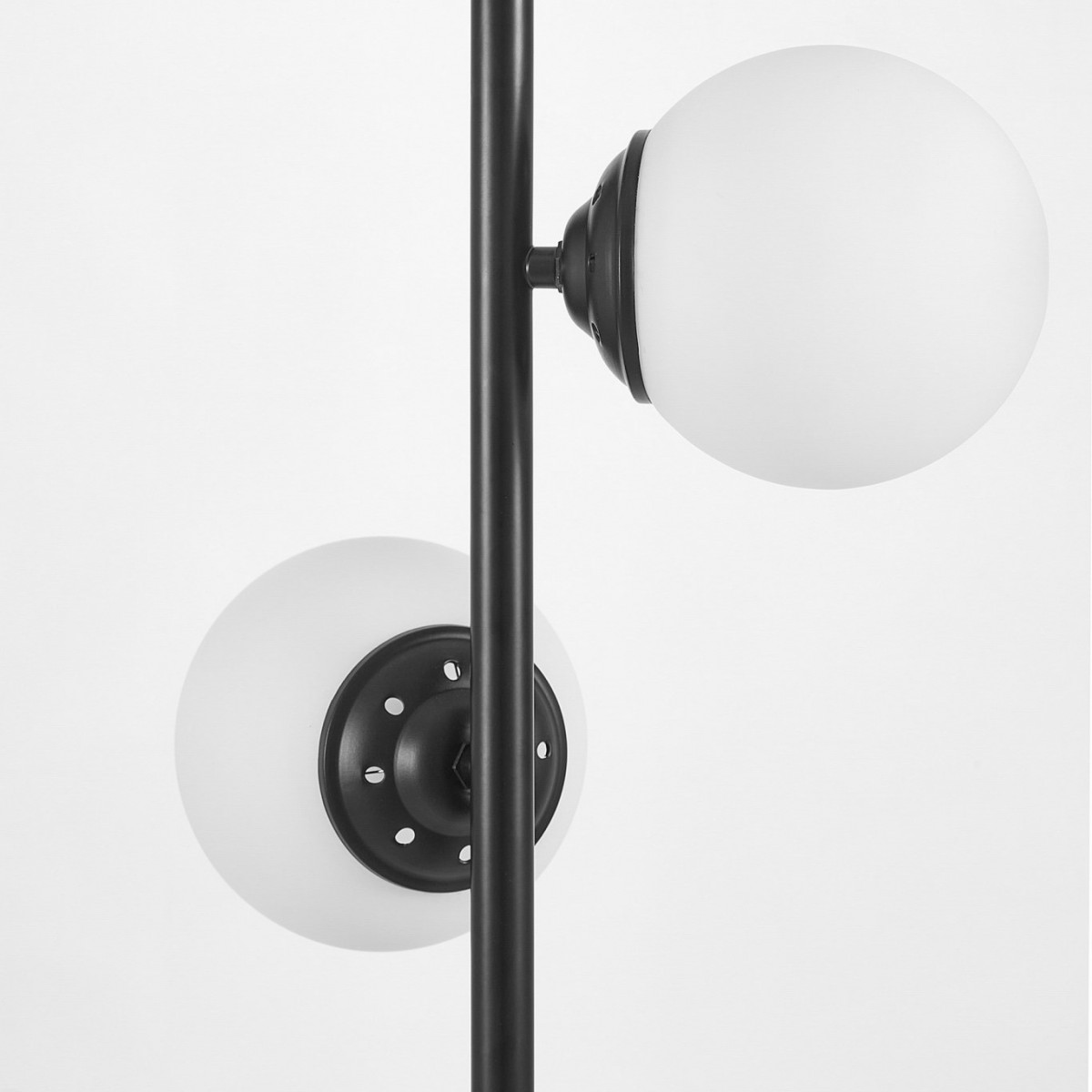 FINO W3 w czarnej wersji kolorystycznej to nowoczesna lampa stojąca, która przyciąga uwagę swoją prostotą i symetryczną formą. Posiada trzy białe klosze z mlecznego szkła, które rozpraszają światło, dając komfort podczas codziennych aktywności – od czytania po odpoczynek w salonie.