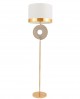 Przykuwająca uwagę swą ozdobnością i ciekawym designem lampa podłogowa FONTI będzie genialnym dodatkiem, a zarazem funkcjonalnym przedmiotem, który udekoruje przestrzeń jadalni czy domowego gabinetu. Biała oprawa, która mocno kontrastuje ze złotem metalowej konstrukcji, mocno podkreśla nowoczesny styl, w jakim zaprojektowana została lampa stojąca.