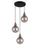 Duża, okrągła podsufitka obok trzech okrągłych, nieco spłaszczonych szklanych kloszy tworzą postać lampy wiszącej GATO W3. Dopełnieniem całości jest ekskluzywna dymiona szara oprawa oraz znamionujące nowoczesność, dające się swobodnie regulować, kable zasilające lampę. Jej loftowy wymiar łatwo wpasuje się w przestrzeń industrialnej jadalni oraz salonu.