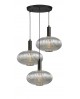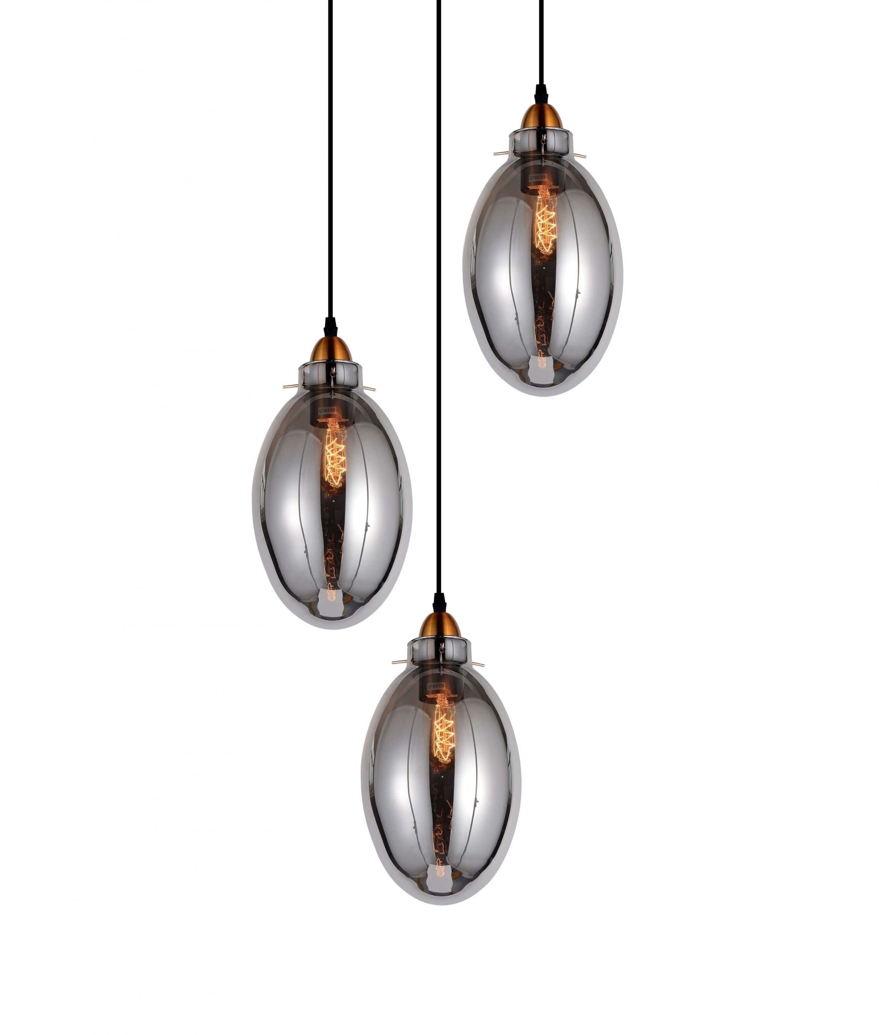 Loftowa linia oświetlenia RENTON pozwala zaaranżować wnętrze na wiele sposobów z uwagi na bardzo minimalistyczne podejście do tworzenia jej produktów, które dzięki ograniczonej ilości elementów, a co za tym idzie specyficznych dekoracji oraz swojej uniwersalności, są w stanie perfekcyjnie dopasować się do rodzaju wnętrza bądź jego wyposażenia. W podsufitce lampy zbiegają się trzy czarne kable o regulowanej długości, które utrzymują poszczególne klosze na wysokościach dopasowanych do upodobań jej użytkowników. Kształt kloszy, tak samo jak ich barwa, jest wyrafinowany i kojący. Ich owalna, opływowa forma uspokaja i wycisza całą kompozycję, zaś dymiony szary kolor wpływa na poczucie estetyki i wyjątkową elegancję produktu. Dekoracyjnym, bardziej kontrastowym fragmentem są tutaj uchwyty trzymające klosze, których mosiężne kopuły przełamują spokój kompozycji.