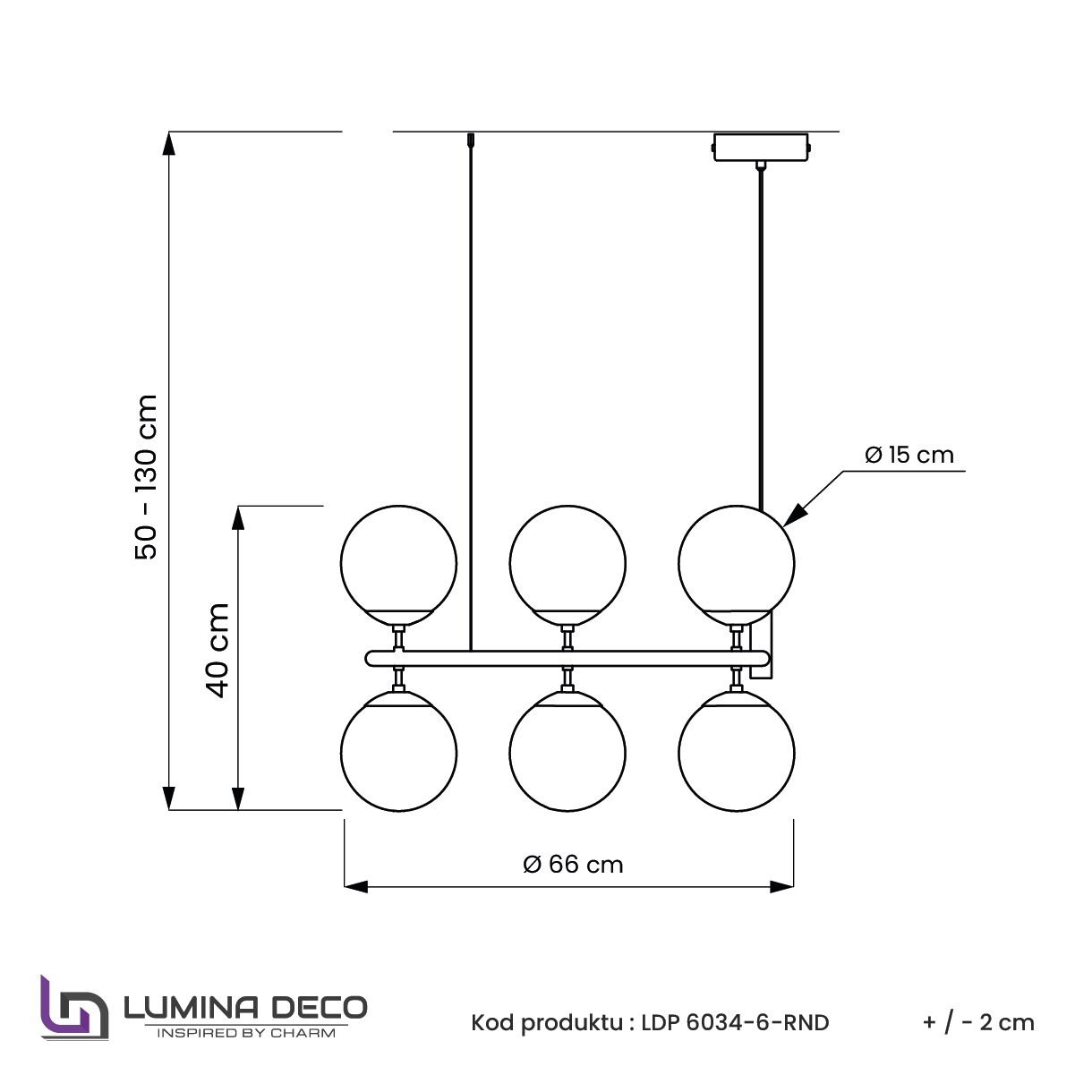średnica lampy: 66 cm. średnica klosza: 15 cm. wysokość lampy: 40 cm.