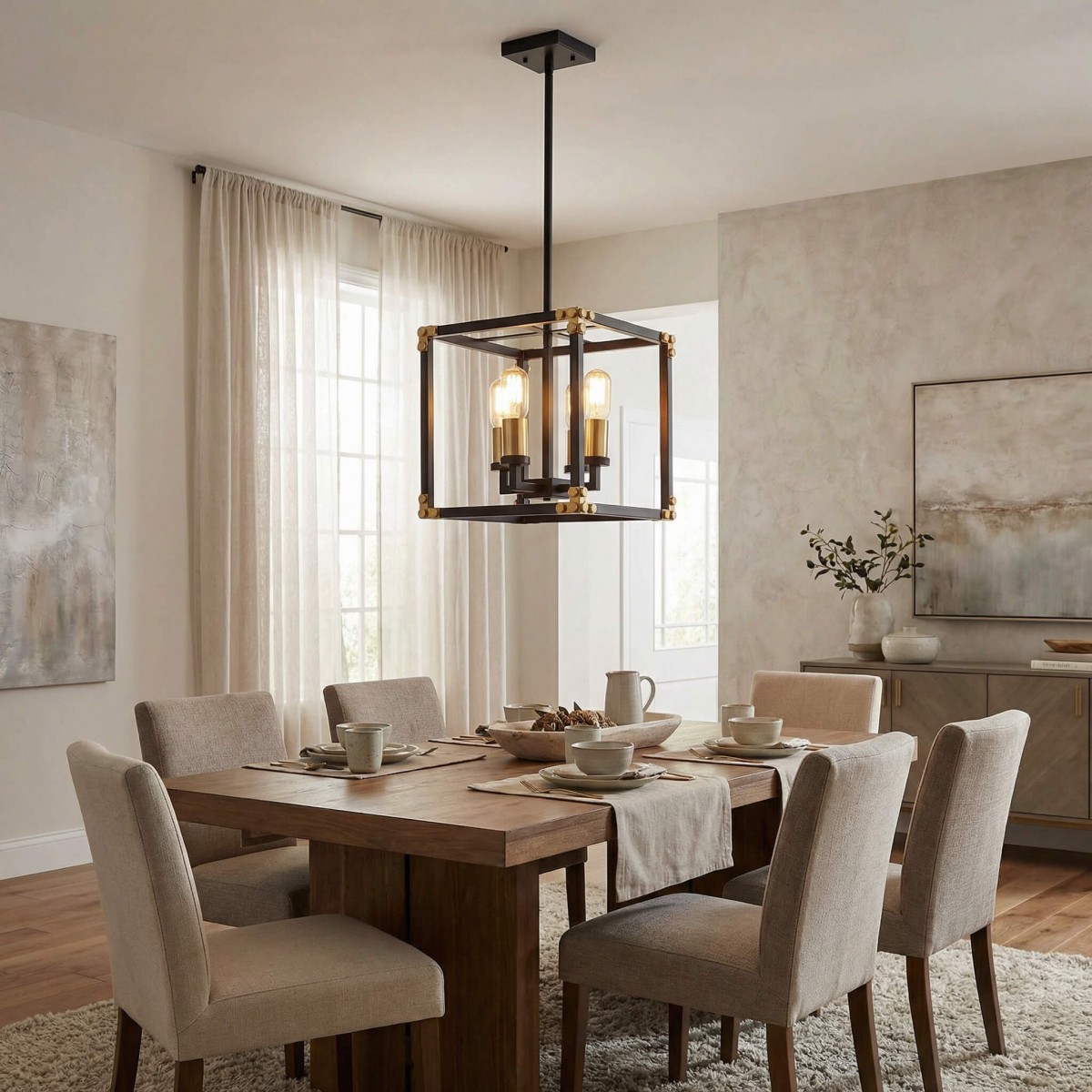 Cztery klosze rozmieszczone na metalowej konstrukcji zapewniają równomierne i funkcjonalne oświetlenie całej przestrzeni. Otwarte formy kloszy pozwalają światłu swobodnie się rozchodzić, tworząc jasną, a jednocześnie przyjemną atmosferę. To rozwiązanie, które łączy estetykę loftowego designu z praktycznym komfortem codziennego użytkowania.
