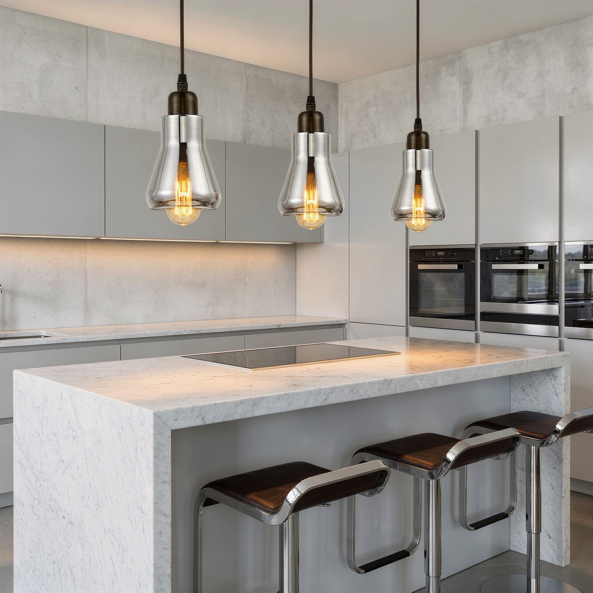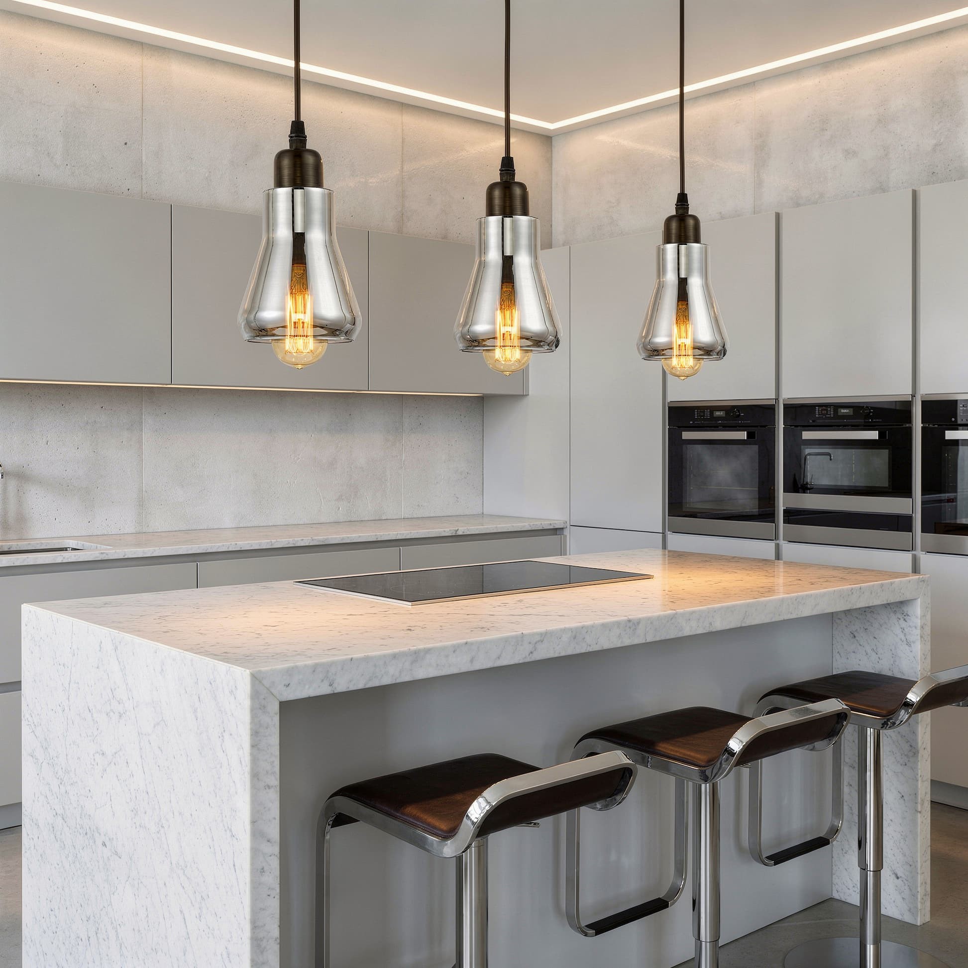 Lampy wiszące Bonio stworzone zostały z myślą o minimalistycznych, industralnych wnętrzach, które potrzebują wyrazistego akcentu dekoracyjnego. Ta loftowa propozycja, skonstruowana głównie z dymionego szkła, stworzy nietuzinkową aranżację w nowoczesnym wnętrzu, np. w biurze, jadalni czy salonie.