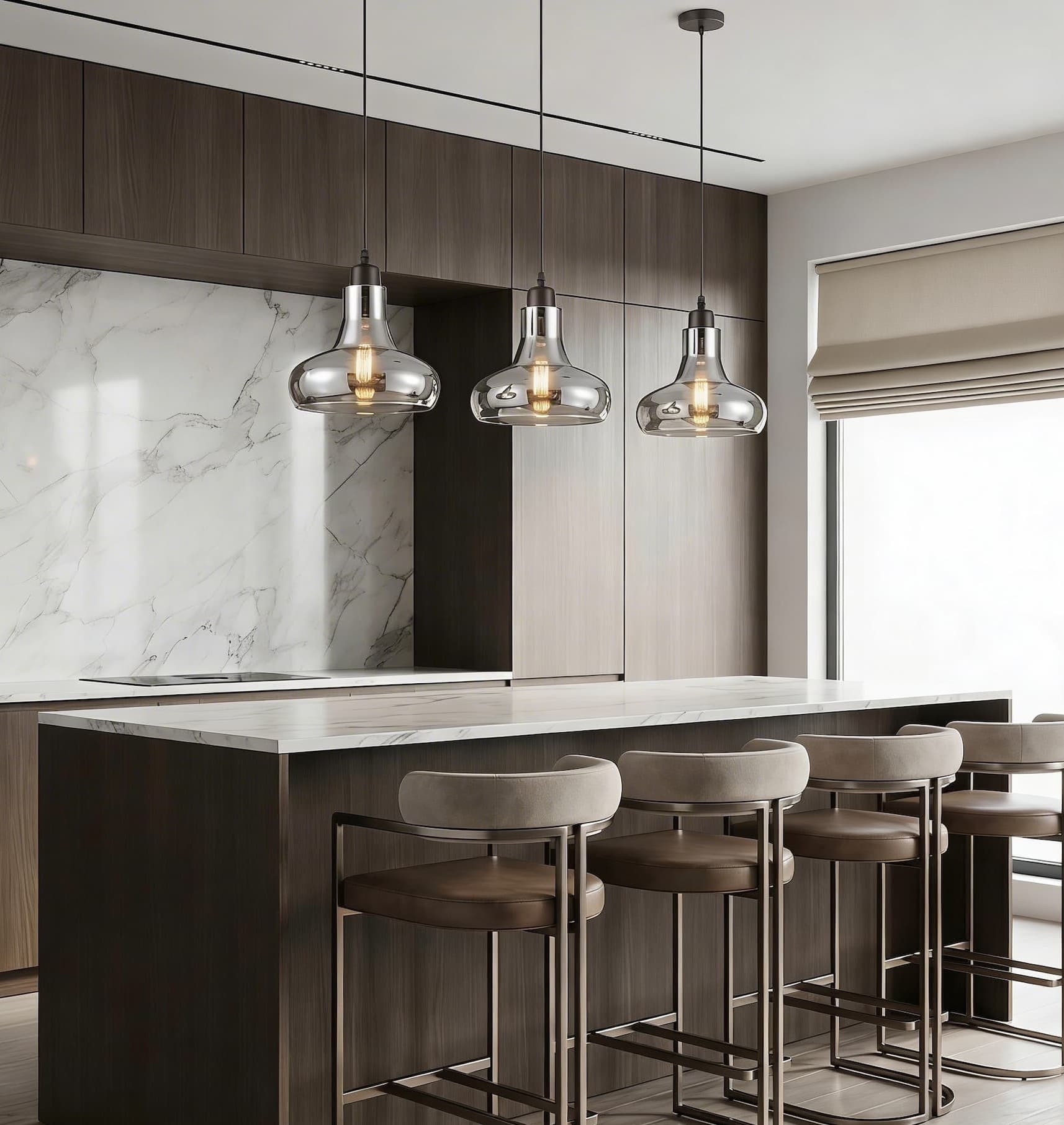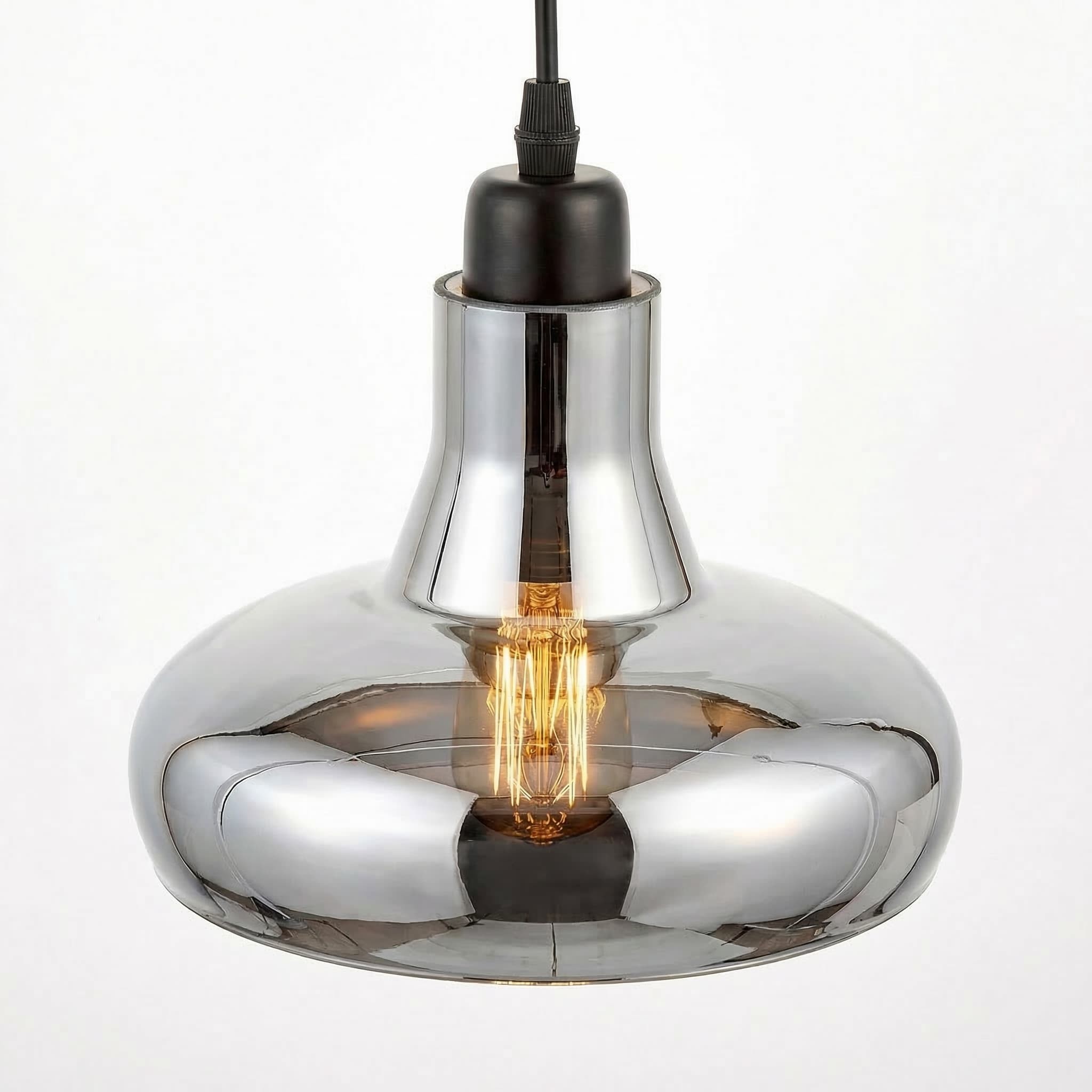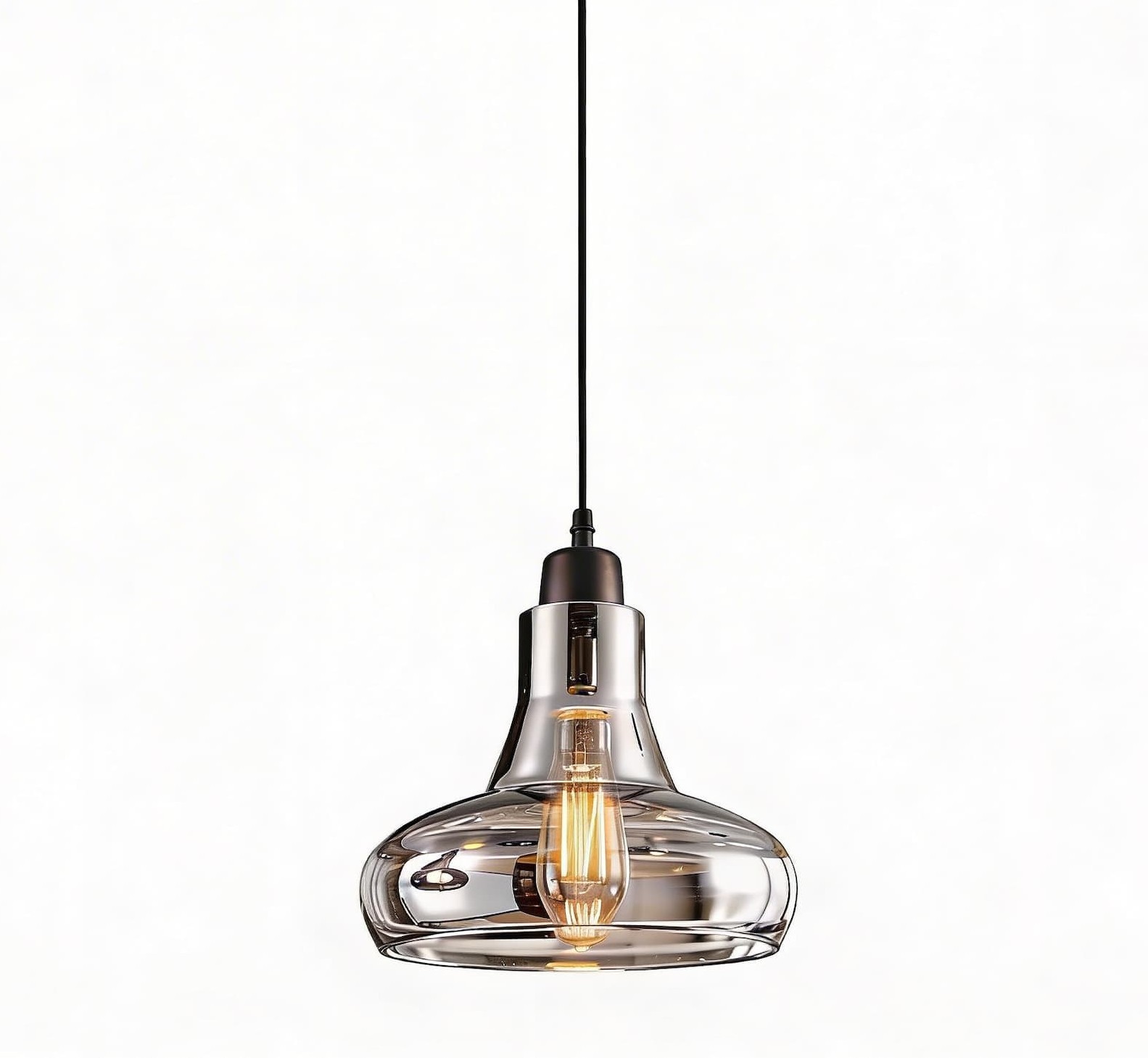 Szklana lampa wisząca Avoni to propozycja na aranżację wnętrza w industrialny, niebanalny sposób. Dymiony szary klosz ze szkła w połączeniu z kontrastującymi z nim czarnymi elementami z tworzywa sztucznego wprowadzi do pomieszczenia współczesne oblicze. Dzięki sporej, dolnej średnicy klosza, lampa tworzy niezwykły wizualny efekt i doskonale sprawdzi się również w wysokich i dużych przestrzeniach. Lampa posiada regulowaną wysokość.