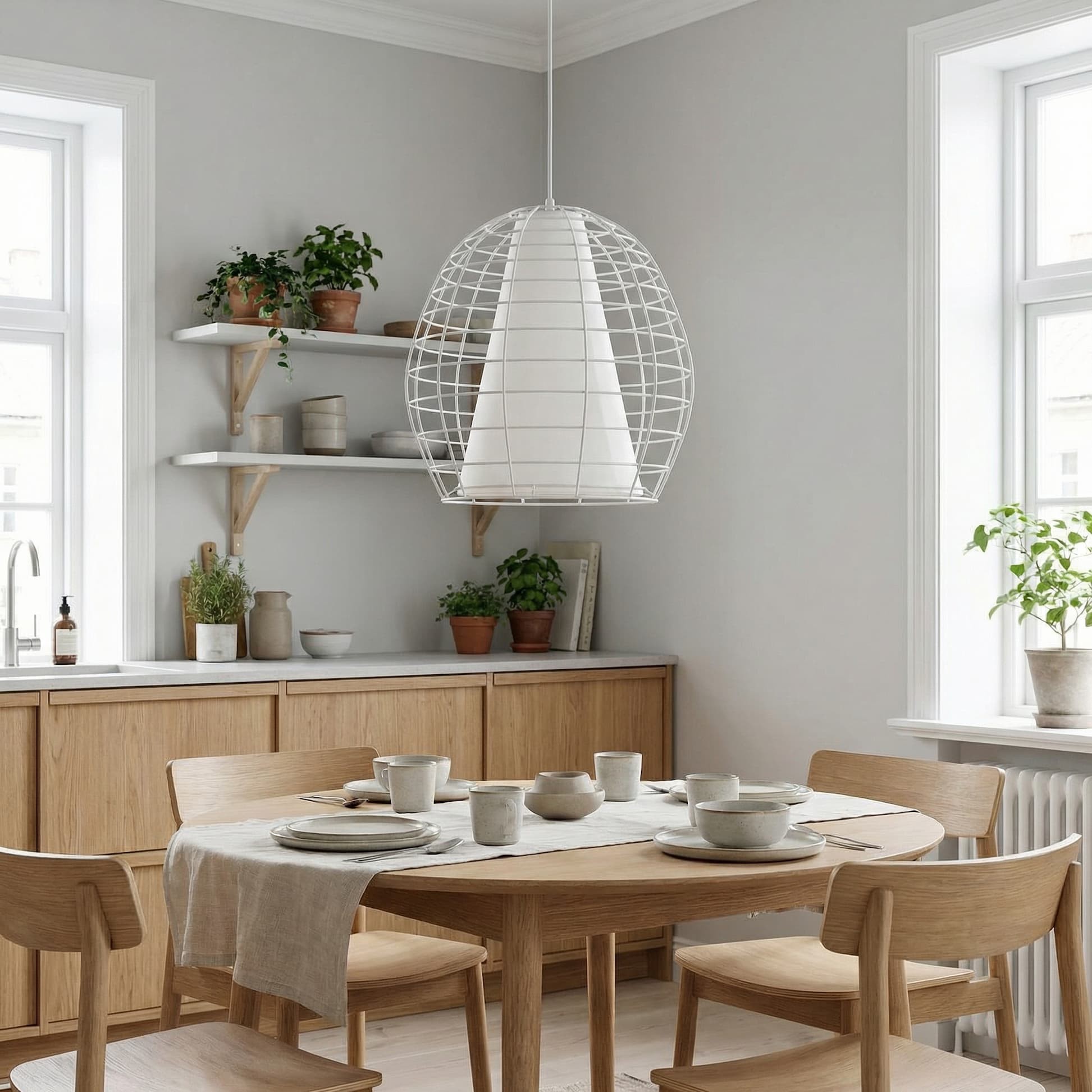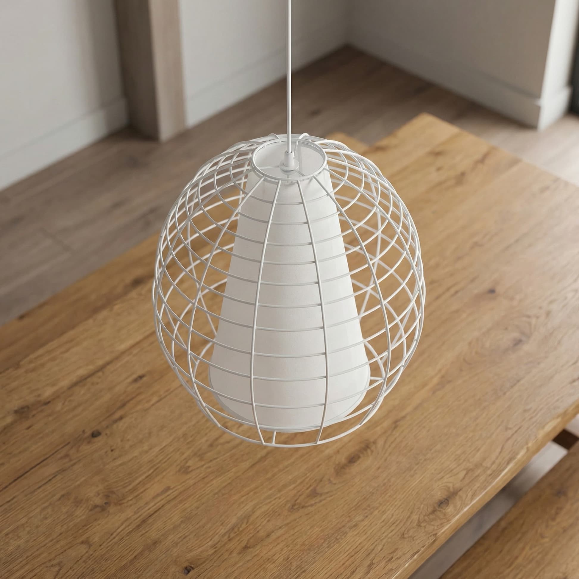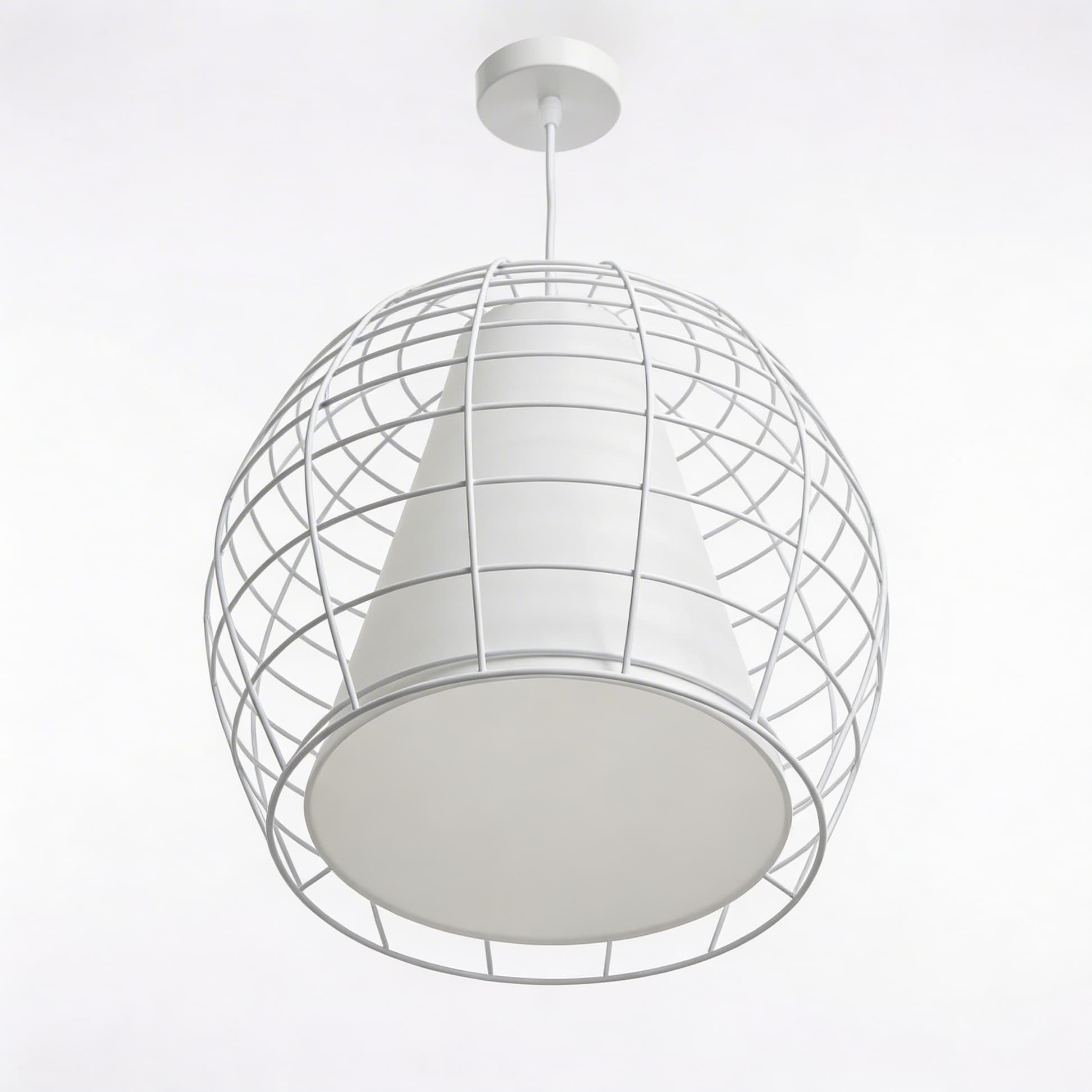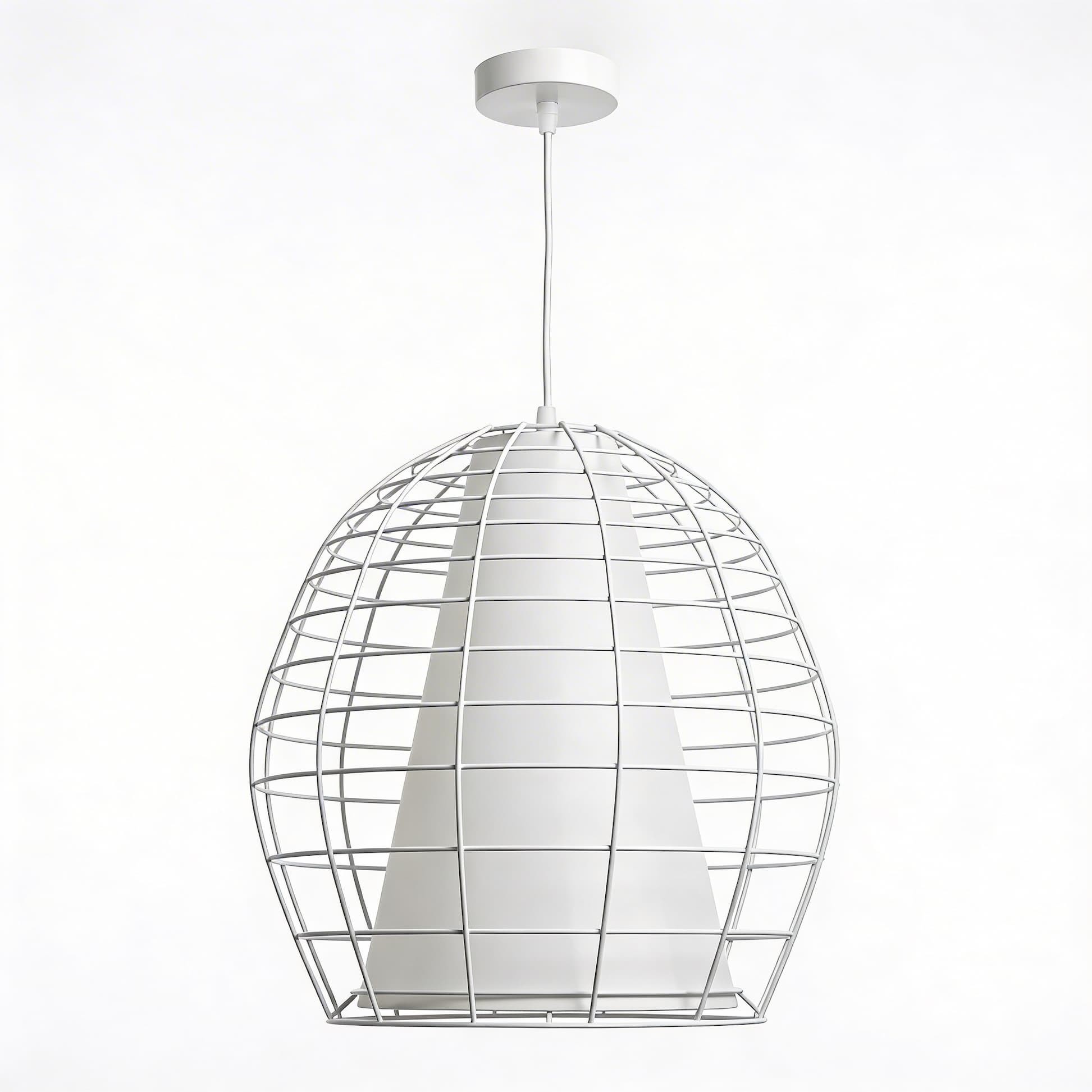 Nowoczesny styl lampy wiszącej BOLZANO dostrzegalny jest na pierwszy rzut oka – oryginalna, surowa konstrukcja tworząca metalowe okratowanie, biała oprawa oraz zaskakujący element we wnętrzu w postaci tkaniny. Wszystko to nadaje się na oświetlenie nie tylko salonu, jadalni czy kuchni, ale będzie fantastycznym dodatkiem do innowacyjnych wnętrz restauracji czy kawiarni.