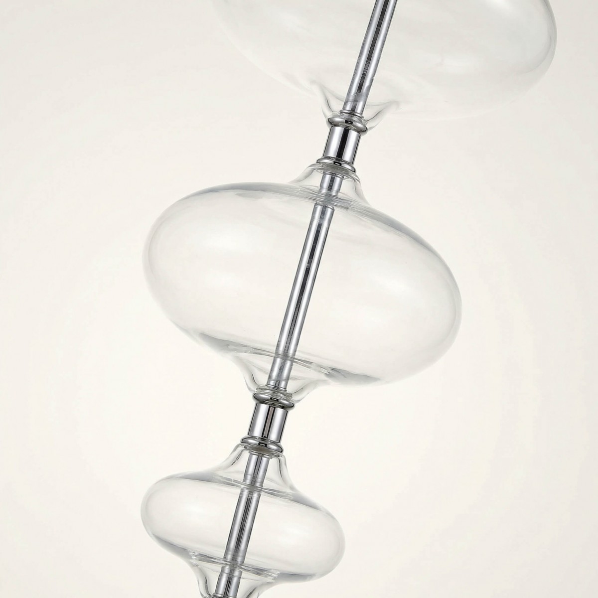Abażur w głębokiej czerni w połączeniu z przezroczystym kablem i chromowaną podsufitką tworzy design, który przyciąga wzrok, nie dominując wnętrza. Geometryczna forma stożkowego klosza to synonim nowoczesnej, przemyślanej estetyki, która idealnie wpisuje się w współczesne aranżacje.