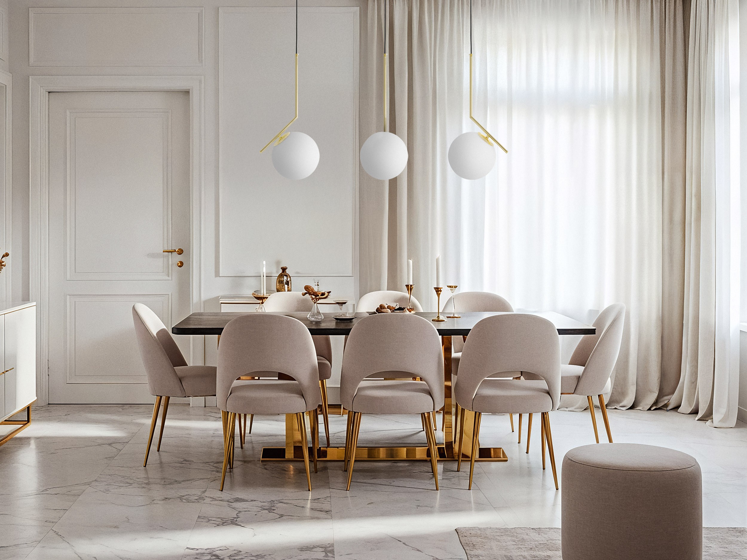 Lampa wisząca SORENTO to niewielkich rozmiarów oświetlenie, które będzie ciekawym sposobem na dodanie blasku jadalni czy kuchni. Nowoczesny styl oraz minimalizm wykończenia tworzy z niej produkt doskonały z punktu widzenia wielbicieli perfekcjonizmu i subtelności. Biała oprawa oraz złote dodatki są tutaj źródłem harmonii i elegancji.