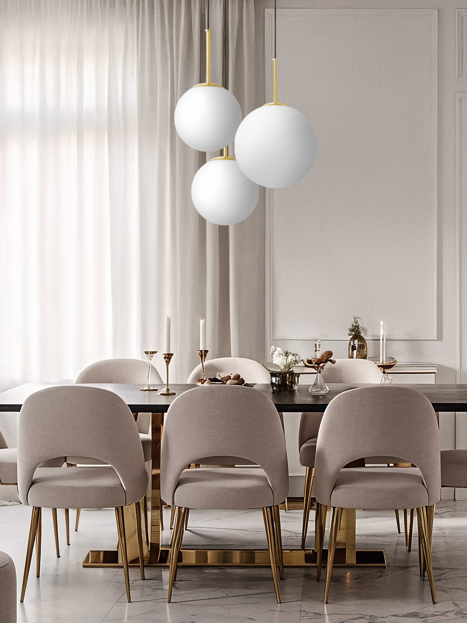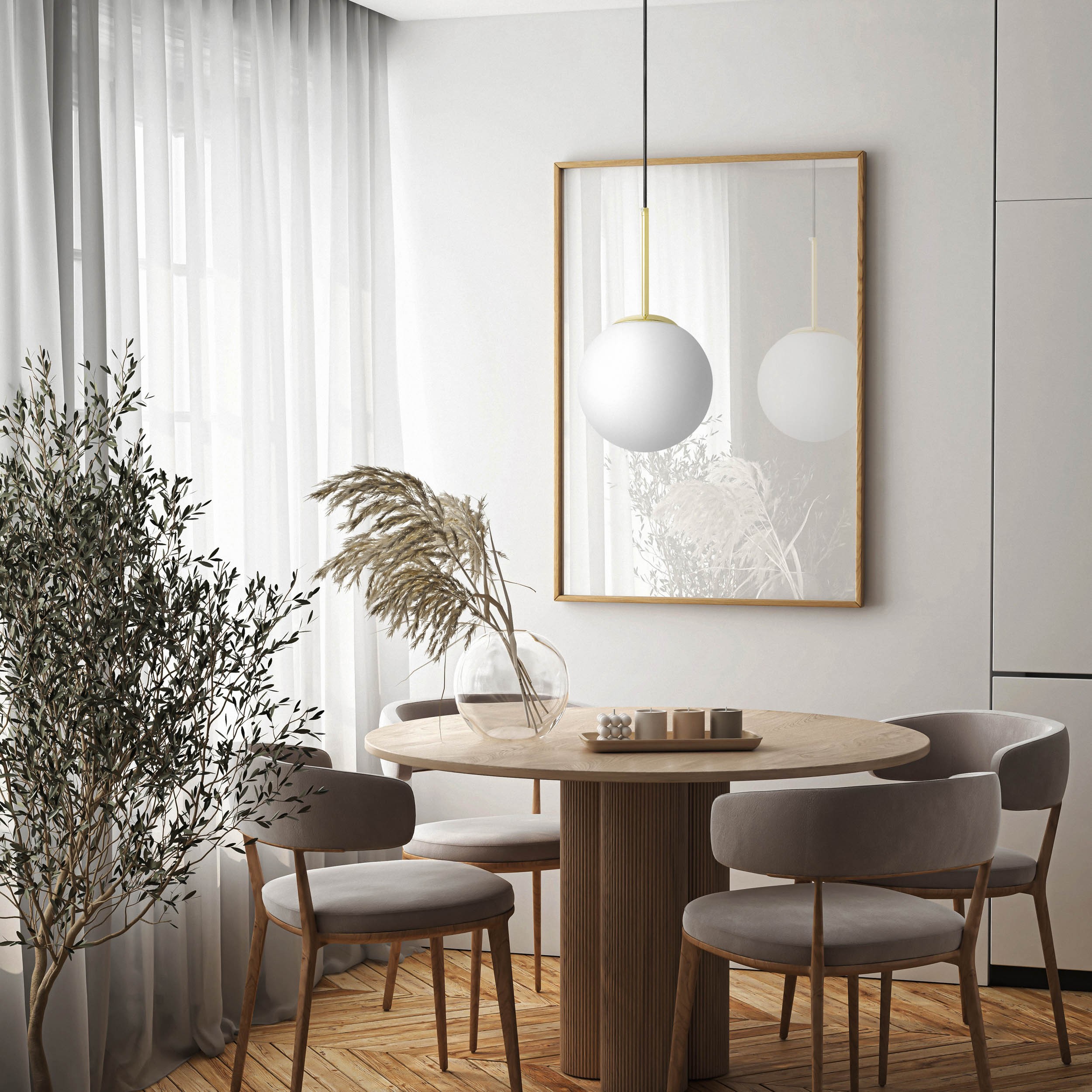Nowoczesny wygląd wiszącej lampy Fredica D20 spotyka się z biało – złotym, klasycznym połączeniem kolorystycznym w stylu modernistycznym, by stworzyć niepowtarzalny design z nutką luksusu. Połączenie białego matowego klosza ze złotym uchwytem nadaje wyszukany klimat, zapewniając dobre oświetlenie i stylowe dopełnienie wnętrza. Lampa wisząca Fredica sprawdzi się doskonale w klasycznie lub nowocześnie urządzonej jadalni, jak i sypialni czy kuchni.