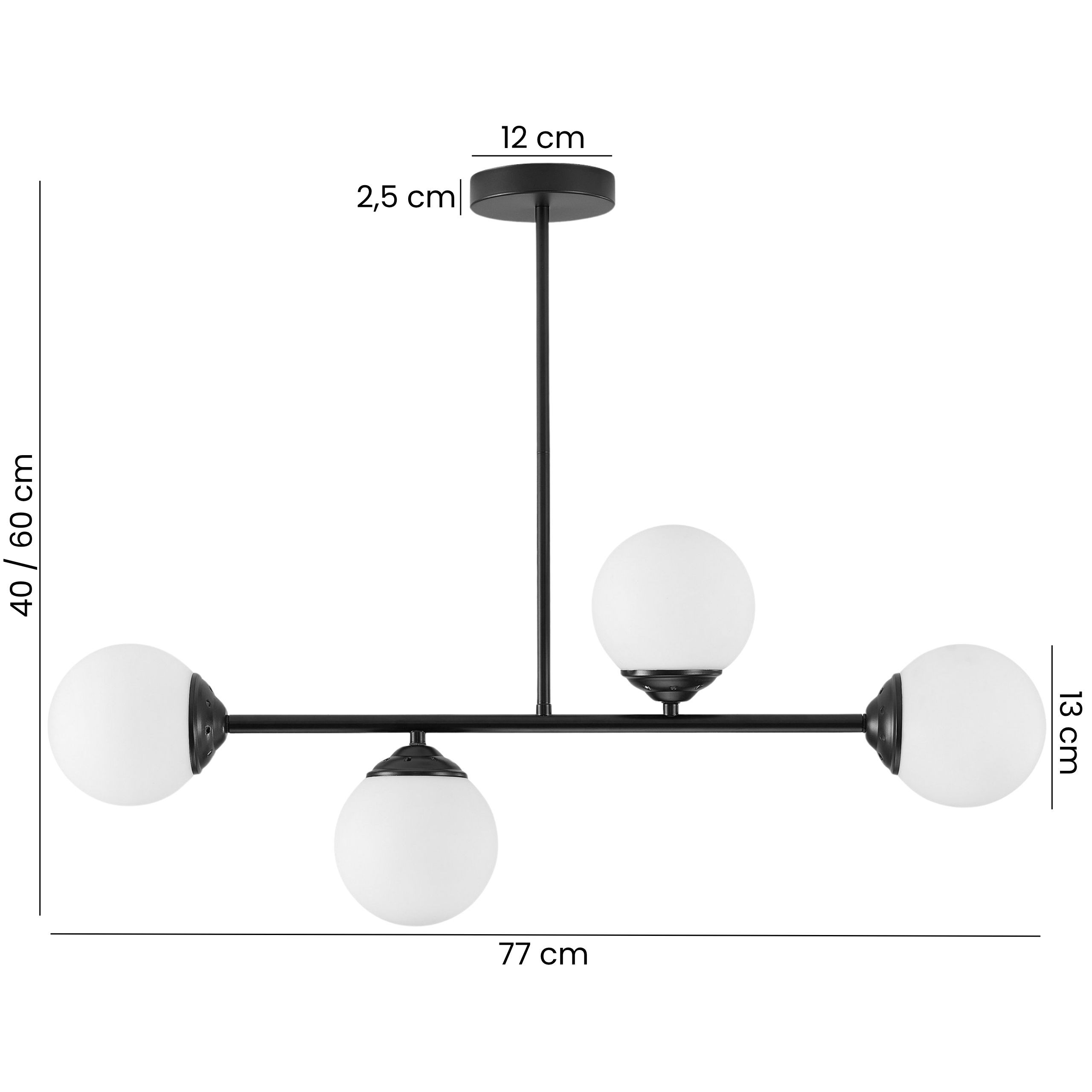 Czarna lampa wisząca FINO W4 to model, który w prosty sposób podkreśla charakter współczesnego wnętrza. Cztery mleczne kule zestawione z czarną oprawą tworzą elegancki kontrast i sprawiają, że lampa stanowi wyrazisty akcent dekoracyjny, który dopełnia nowoczesne przestrzenie.