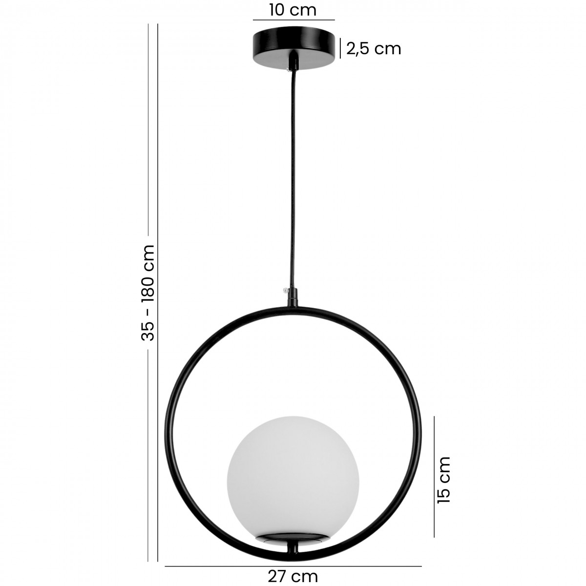Nowoczesna lampa wisząca VERO 1A to oprawa o ciekawym wyglądzie, który sprawdzi się zwłaszcza w modernistycznych, minimalistycznych i industrialnych wnętrzach. Model to smukła konstrukcja w formie pierścienia, w którym osadzono biały klosz w kształcie kuli. Ta lampa tworzy atmosferę, w której dobrze się przebywa, niezależnie od pomieszczenia i pory dnia.