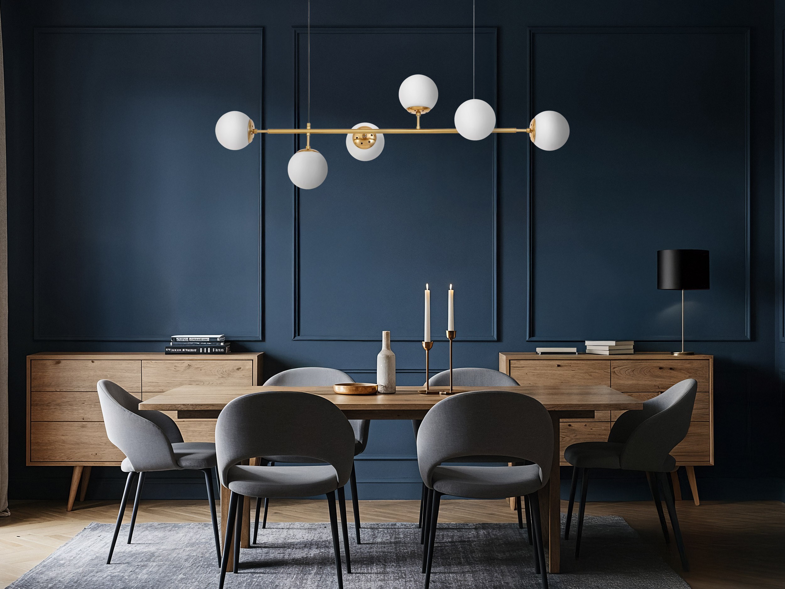 Metaliczne piękno w połączeniu z delikatnie białym szkłem oraz mosiężną oprawą tworzą z lampy wiszącej CEREDO model nowoczesnego oświetlenia, który w perfekcyjny sposób odda klimat urządzonego w industrialnym stylu salonu czy sypialni. Światło dochodzące z sześciu kloszy będzie także idealne nad jadalniany stół czy wyspę kuchenną.