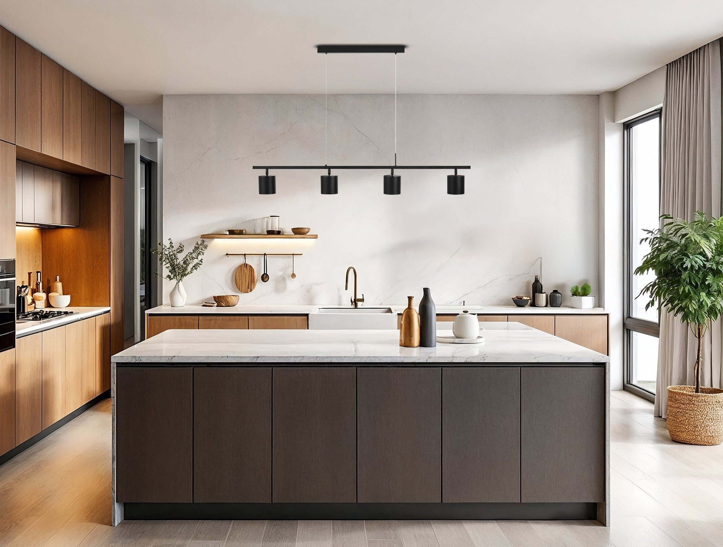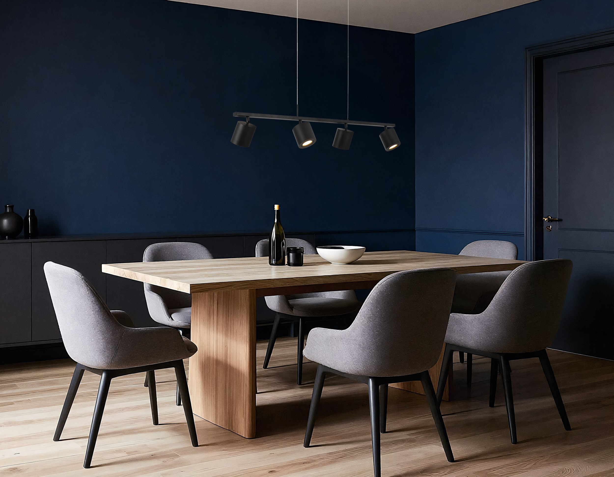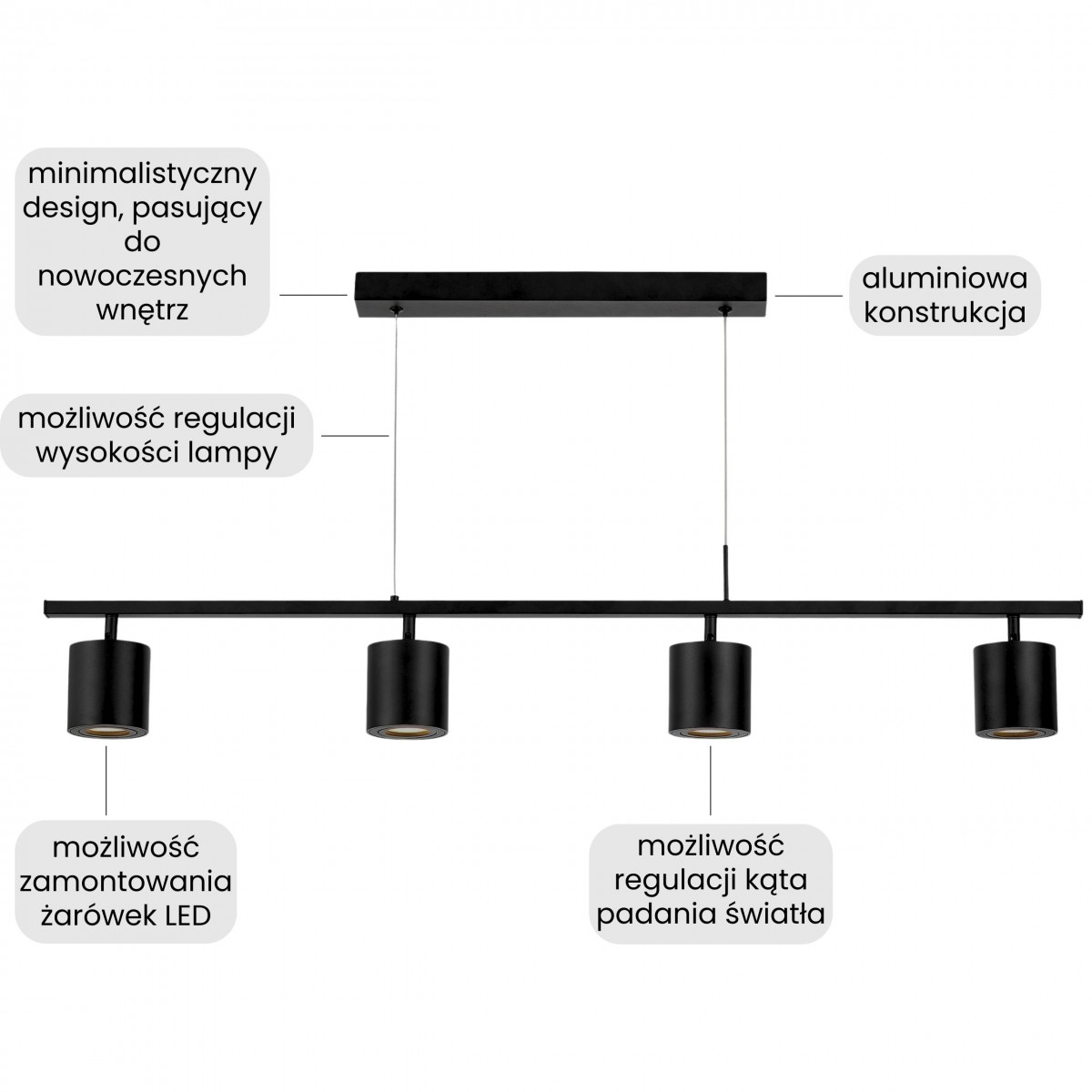 BOLT W4 to nowoczesna lampa wisząca z czterema źródłami światła w kształcie reflektorków i możliwością wyboru kierunku oświetlenia. Taki układ świetnie sprawdza się w wielu rolach, niezależnie od typu pomieszczenia. Przy stole w kuchni, ułatwiając przygotowywanie posiłków, spotkania z bliskimi i pracę nad codziennymi zadaniami. Jako lampa do salonu tworzy atmosferę sprzyjającą rozmowom, w sypialni pomaga w wyciszeniu po długim dniu, z kolei w domowym biurze ułatwia uwagę i skupienie.