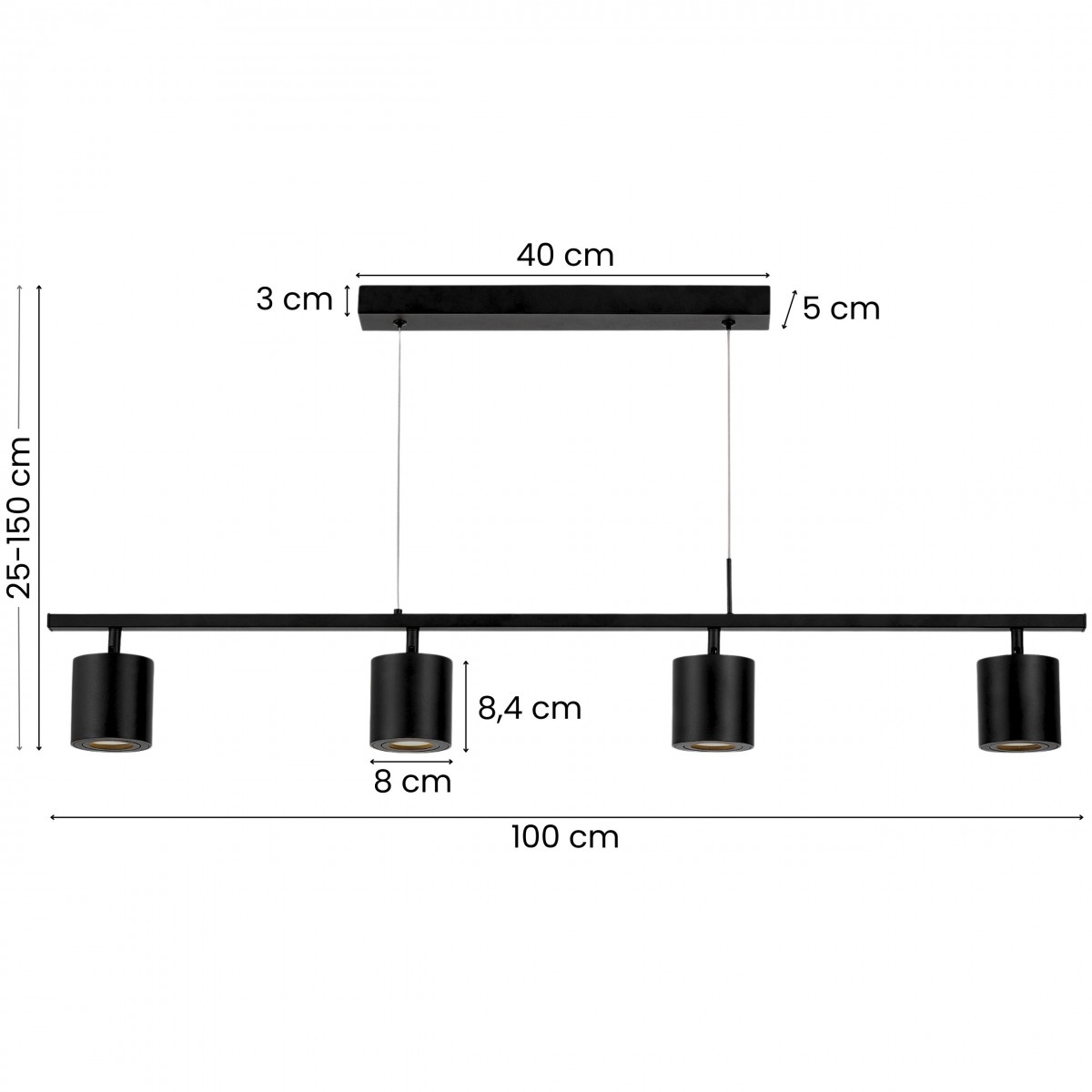 BOLT W4 to czarna lampa wisząca z czterema punktami światła skierowanymi w dół, osadzonymi na smukłej konstrukcji. Dzięki nowoczesnemu wyglądowi doskonale sprawdza się we współczesnych wnętrzach, w których liczy się zarówno funkcjonalność, jak i unikalny styl.