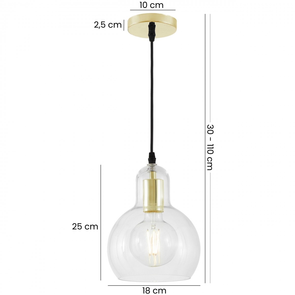 MORO 1A w wersji klasyczne złoto to nowoczesna lampa wisząca wykonana z transparentnego szkła i metalu w eleganckim wykończeniu. Charakterystyczny kształt klosza, nawiązujący do żarówki, w połączeniu z widoczną oprawką tworzy wyrazisty i stylowy akcent we wnętrzu. To model zaprojektowany z myślą o codziennym, funkcjonalnym oświetleniu we współczesnym charakterze.