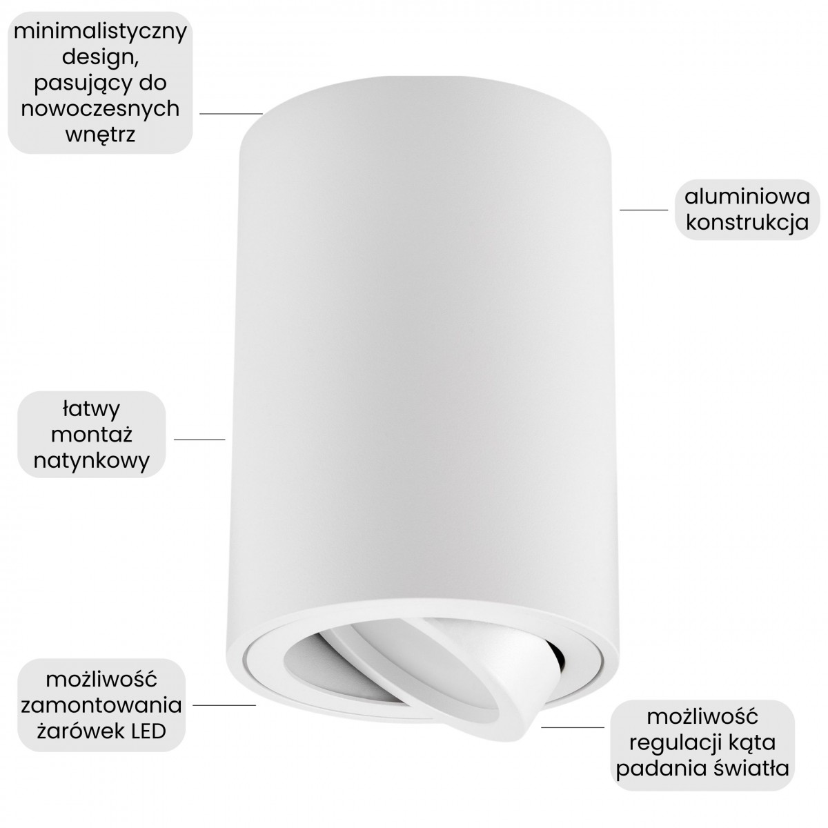 Kolekcja NATI obejmuje oprawy natynkowe typu spot w dwóch klasycznych kolorach: bieli i czerni. Modele pozwalają tworzyć spójne zestawy oświetleniowe w całym mieszkaniu — od kuchni, przez sypialnię i salon, aż po przedpokój czy domowego biuro. NATI to propozycja dla osób, które szukają praktycznego, kierunkowego światła w nowoczesnym wydaniu.