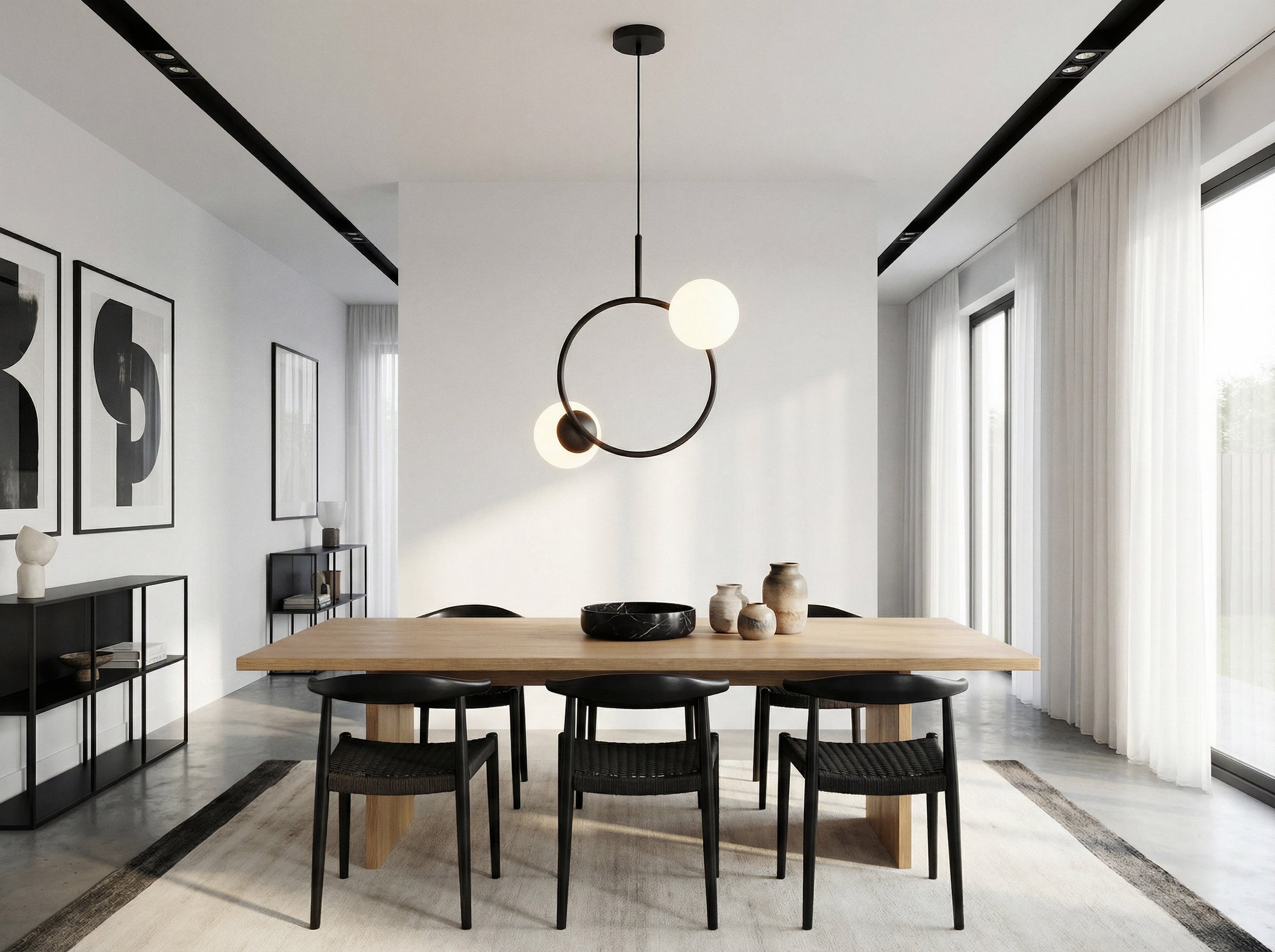 LEDO 2 zachwyca równowagą między dekoracyjnością a funkcjonalnością. Pierścień zyskuje lekkość dzięki kontrastowi czerni i bieli, co sprawia, że ta nowoczesna lampa wisząca wyjątkowo sprawdza się zarówno we wnętrzach o surowym charakterze, jak i w tych bardziej przytulnych. Doskonale uzupełnia aranżacje, w których światło pełni nie tylko praktyczną rolę, ale również tworzy nastrój – łączy estetykę z codziennym komfortem podczas domowych aktywności.