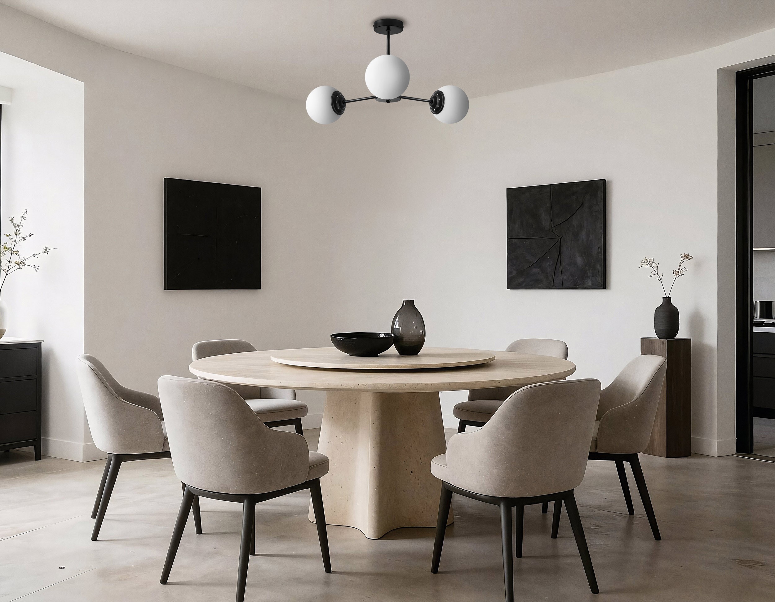 FINO W3 to lampa sufitowa, która udowadnia, że dekoracyjny detal nie musi być krzykliwy. Jej atutem jest prostota połączona z geometrią – proste linie porządkują formę, a mleczne kule zapewniają przyjemne światło, które sprzyja codziennym aktywnościom.