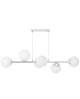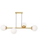 Lampa wisząca FINO W6 w kolorze szczotkowanego złota to elegancka oprawa oświetleniowa z sześcioma kloszami z mlecznego szkła. Symetryczny układ kul sprawia, że światło rozchodzi się równomiernie, zapewniając komfort w codziennym użytkowaniu. Złote wykończenie nadaje lampie nowoczesny, a jednocześnie ponadczasowy charakter, dzięki czemu dobrze sprawdza się w różnych aranżacjach - od modern classic po skandynawskie i industrialne.
