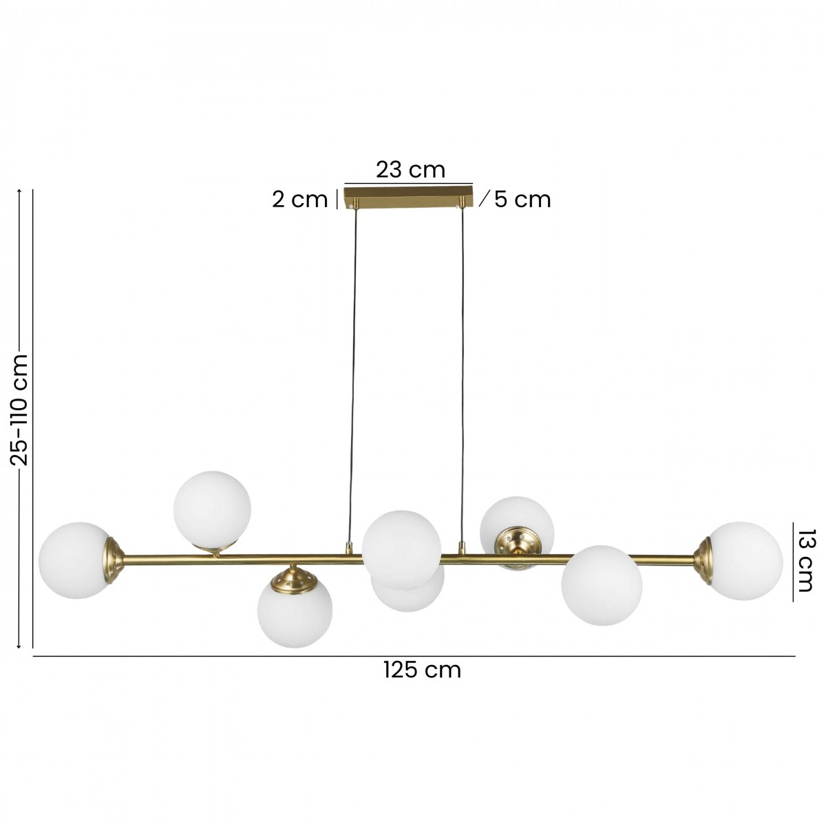 FINO W8 to lampa wisząca, która została zaprojektowana z myślą o dużych, reprezentacyjnych przestrzeniach. Dzięki ośmiu źródłom światła wnętrze zyskuje jasność bez potrzeby stosowania dodatkowych opraw. Mleczne szkło kloszy sprawia, że światło jest przyjemne i równomierne, a całość nabiera eleganckiego charakteru.