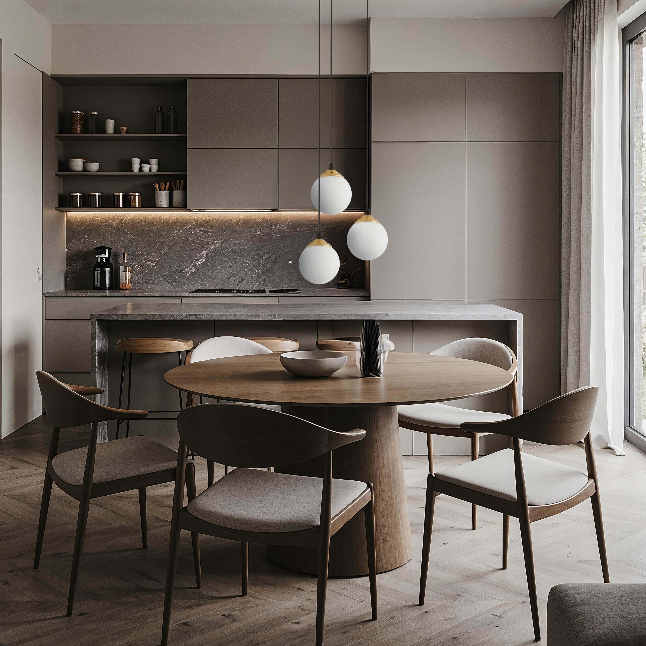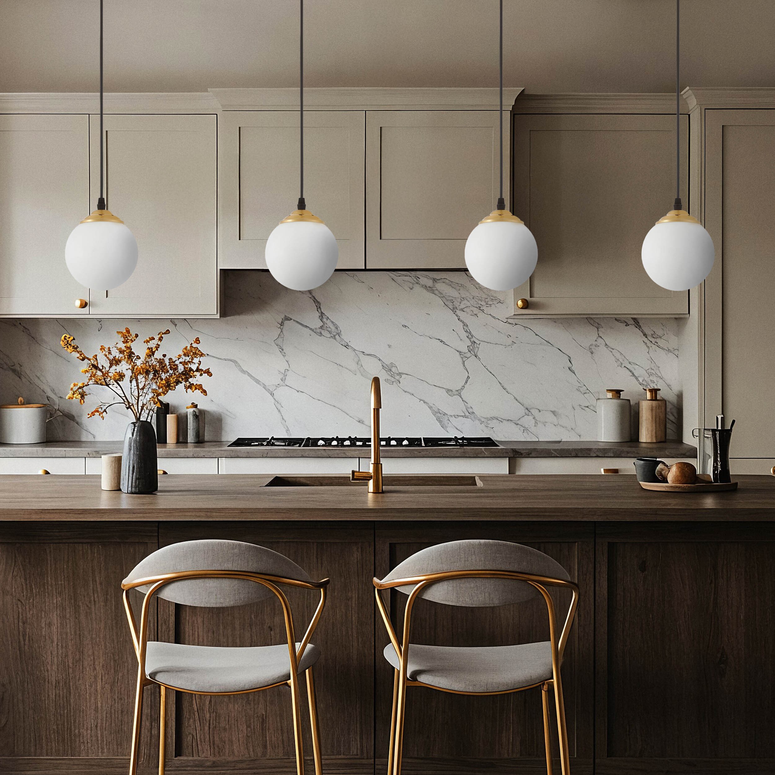 Lampa wisząca FINO W1 w wersji szczotkowanego złota to elegancka propozycja w kompaktowym formacie, ale niepozbawiona elegancji. Pojedynczy kulisty klosz z mlecznego szkła i smukła, złota oprawa tworzą połączenie proste, ale jednocześnie bardzo dekoracyjne. To detal, który wprowadza do wnętrza nowoczesny akcent w minimalistycznej formie.