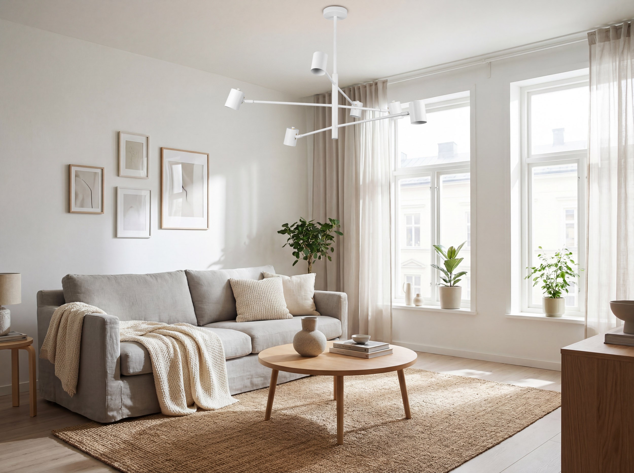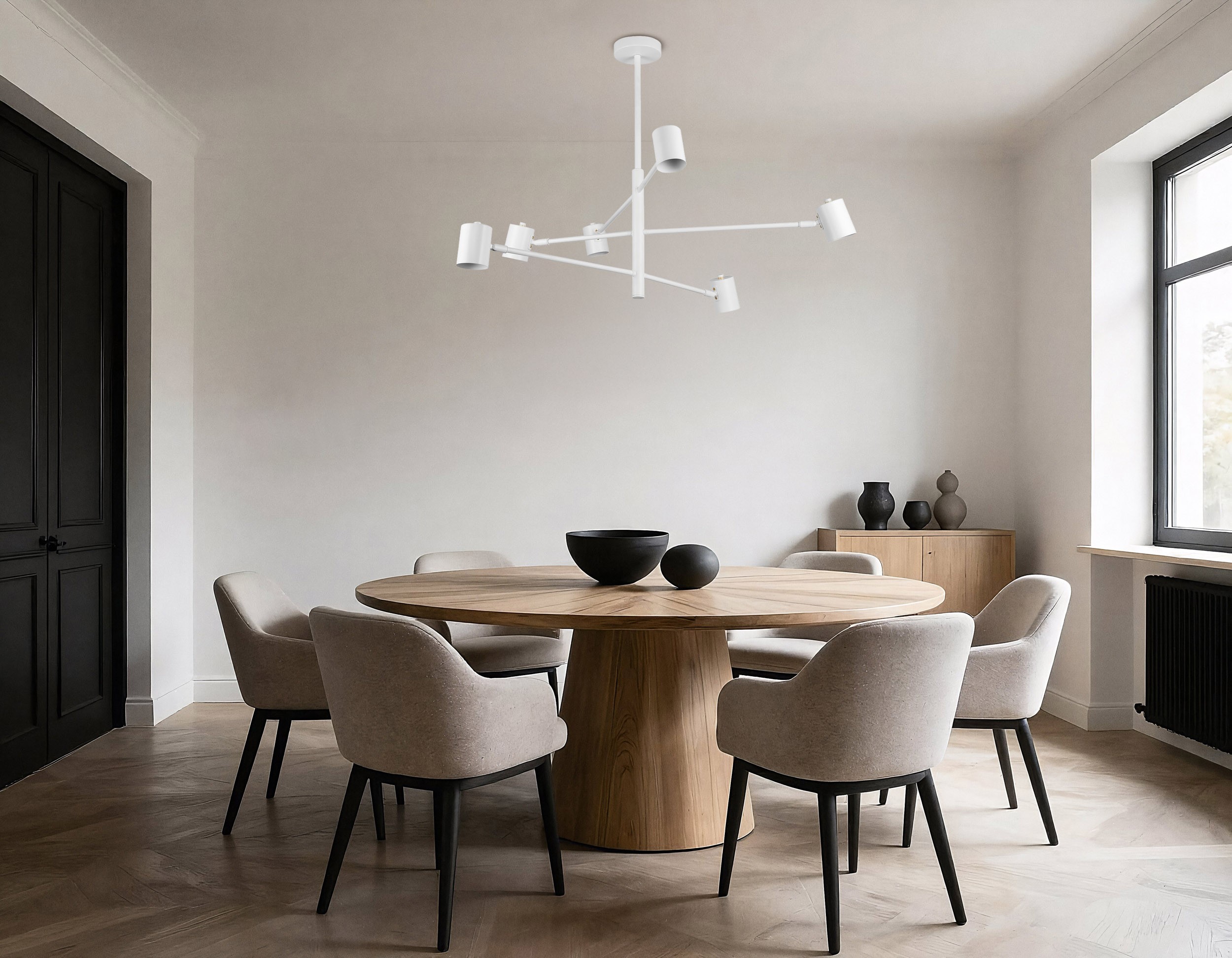 Lampa DORA W6 w białym wykończeniu to nowoczesna propozycja, która łączy prostotę i praktyczność do współczesnych przestrzeni. Jej konstrukcja z sześcioma reflektorami z możliwością regulacji góra - dół umożliwia skierowanie światła dokładnie tam, gdzie jest najbardziej potrzebne, a jasna kolorystyka sprawia, że model łatwo dopasowuje się do każdego wnętrza, niezależnie od stylu.