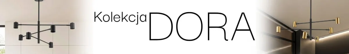 Seria DORA to linia oświetlenia, która daje dużą swobodę w projektowaniu przestrzeni. Zawiera lampy wiszące w wersji z wieloma reflektorami w kolorze białym, czarnym i czarno-złotym.