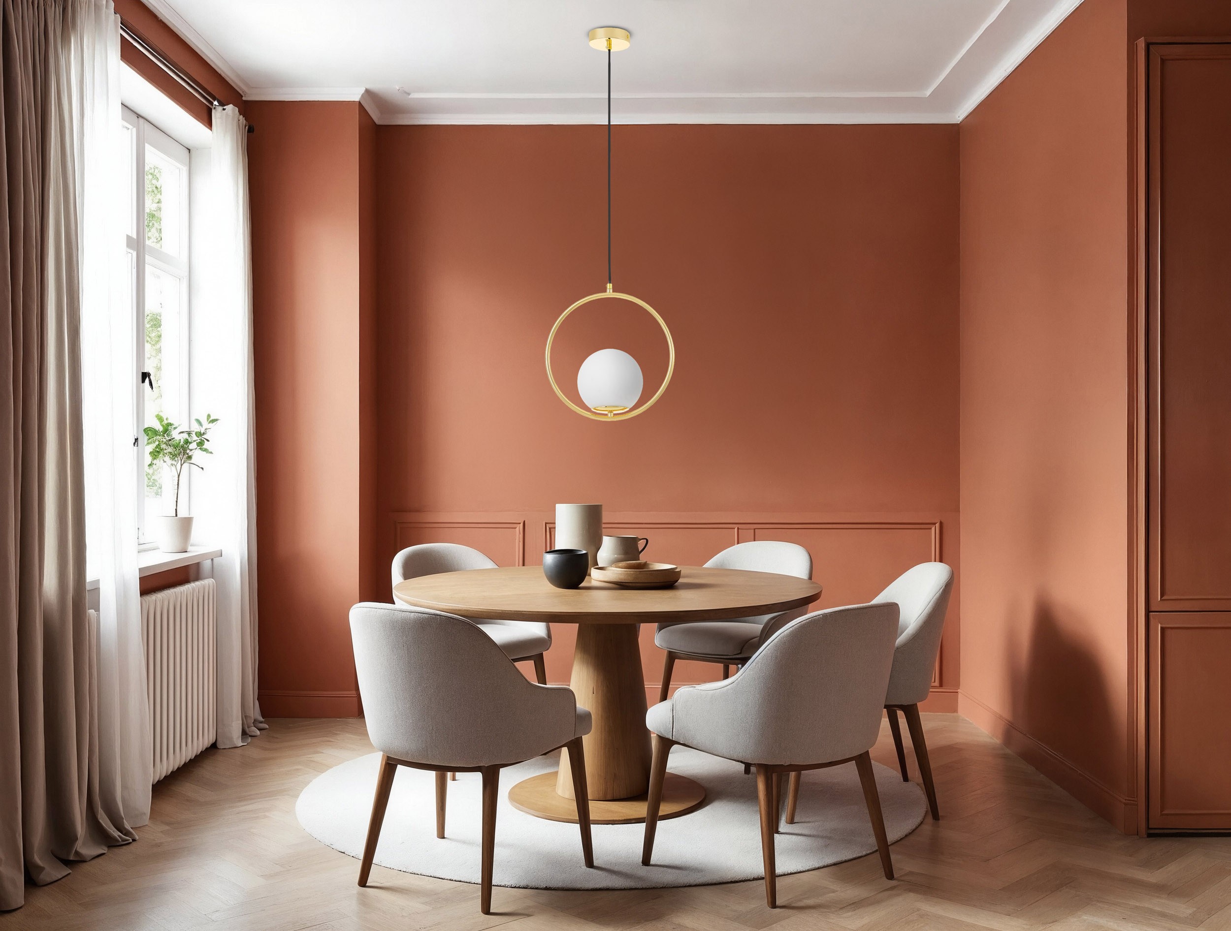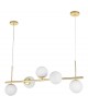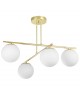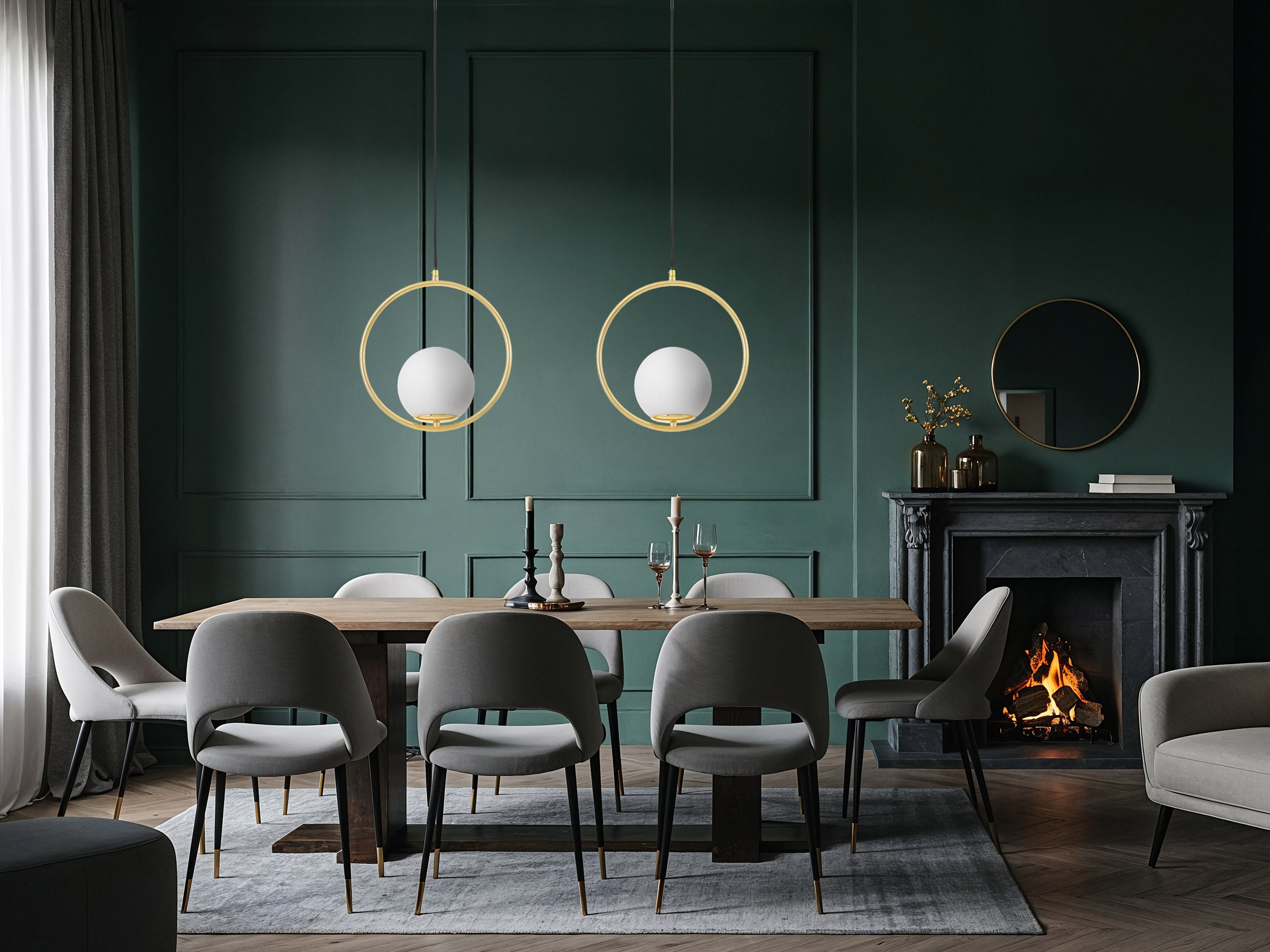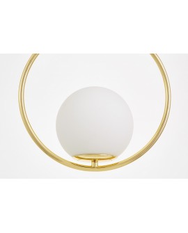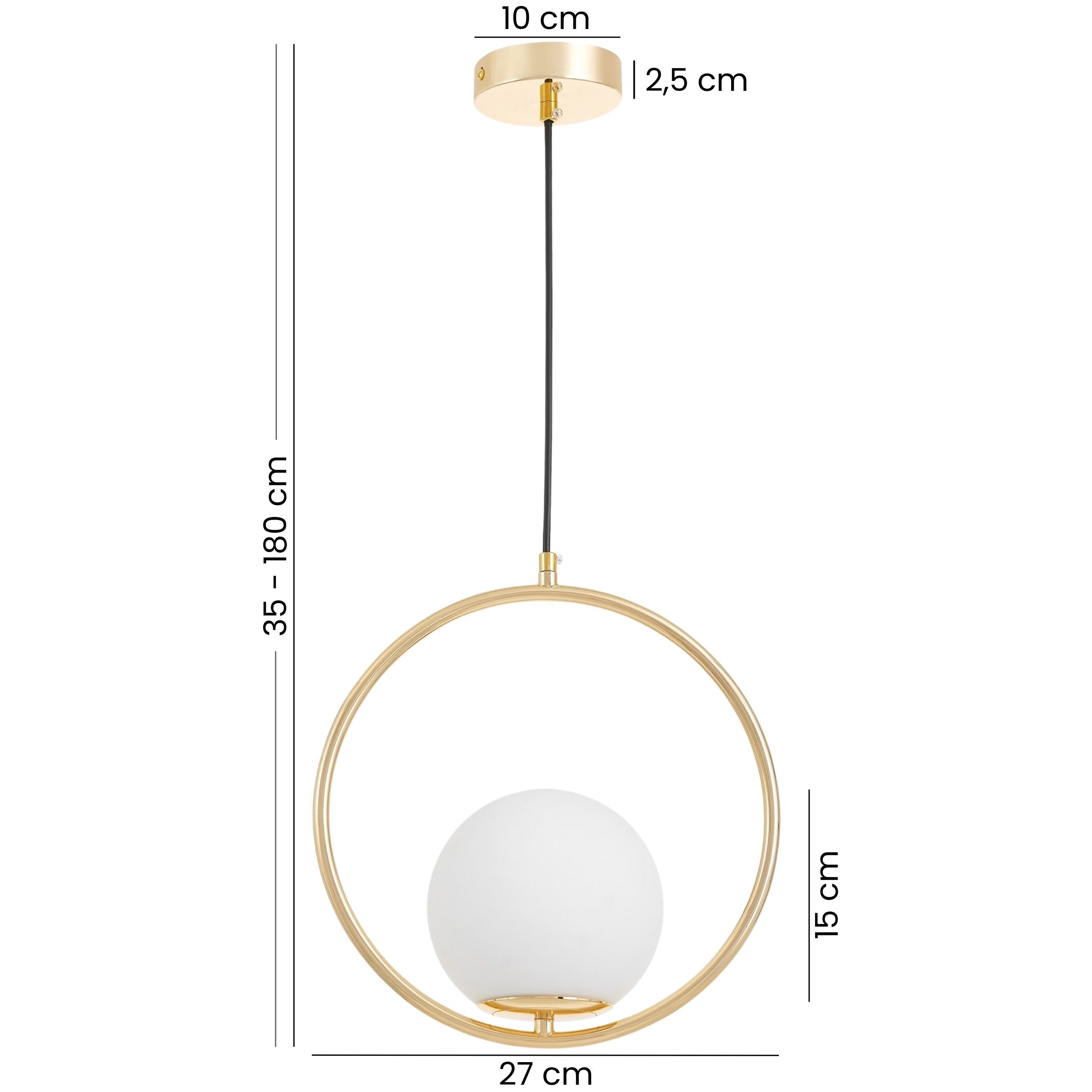 Złota obręcz lampy otacza kulę z mlecznego szkła, tworząc prostą, a zarazem efektowną formę. Ta lampa wisząca z kolekcji VERO rozświetla wnętrze w naturalny sposób, wprowadzając do niego ciepły ton, luksus i poczucie harmonii. W formie lampy do kuchni podkreśla przestrzeń nad stołem, w salonie podkreśla elegancję, a w sypialni buduje spokojny nastrój.