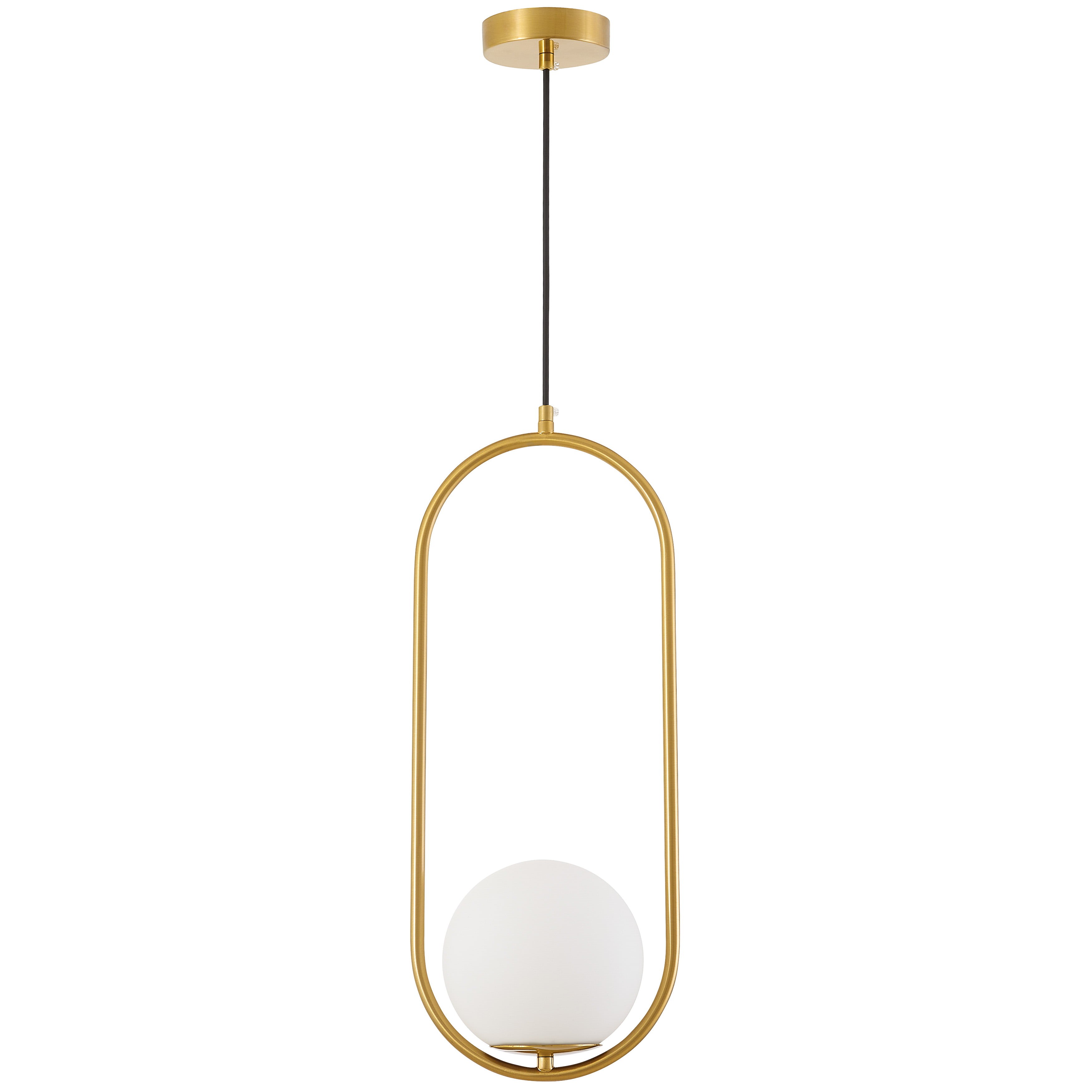 VERO 1B w szczotkowanym złocie to nowoczesna lampa wisząca oparta na owalnej ramie w matowym odcieniu złota i białym kloszu. Design tworzy eleganckie połączenie, które pasuje do wnętrz w różnych stylach, urządzonych z myślą o codziennym komforcie.