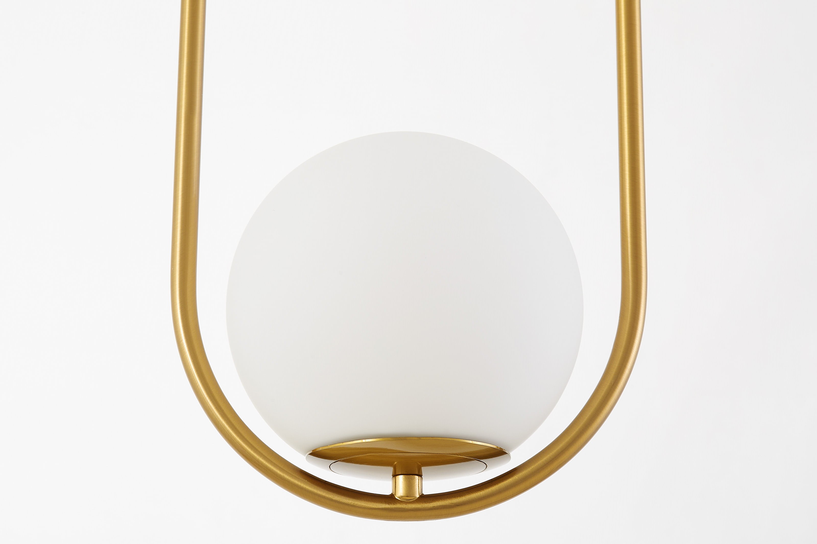 Złota lampa wisząca VERO 1B w szczotkowanym wykończeniu wygląda nowocześnie, a jednocześnie jest stonowanym dodatkiem do wnętrza. Delikatne wykończenie oprawy sprawia, że doskonale komponuje się z różnymi materiałami – od drewna, przez kamień, po szkło czy beton. Mleczny klosz daje równomierne światło, które jest wystarczająco jasne do codziennych czynności i przyjemne podczas wieczornego odpoczynku.
