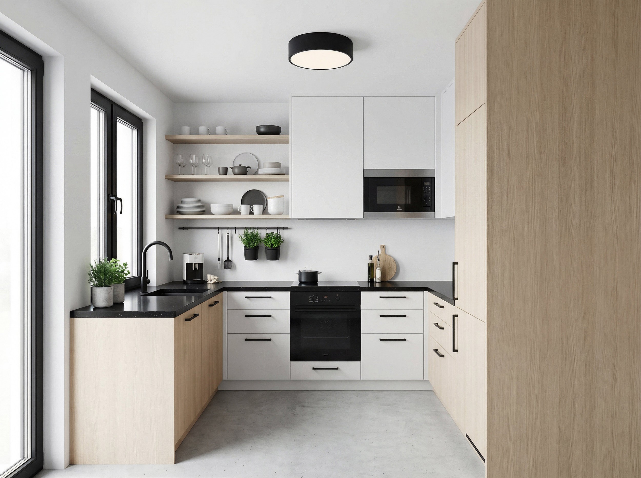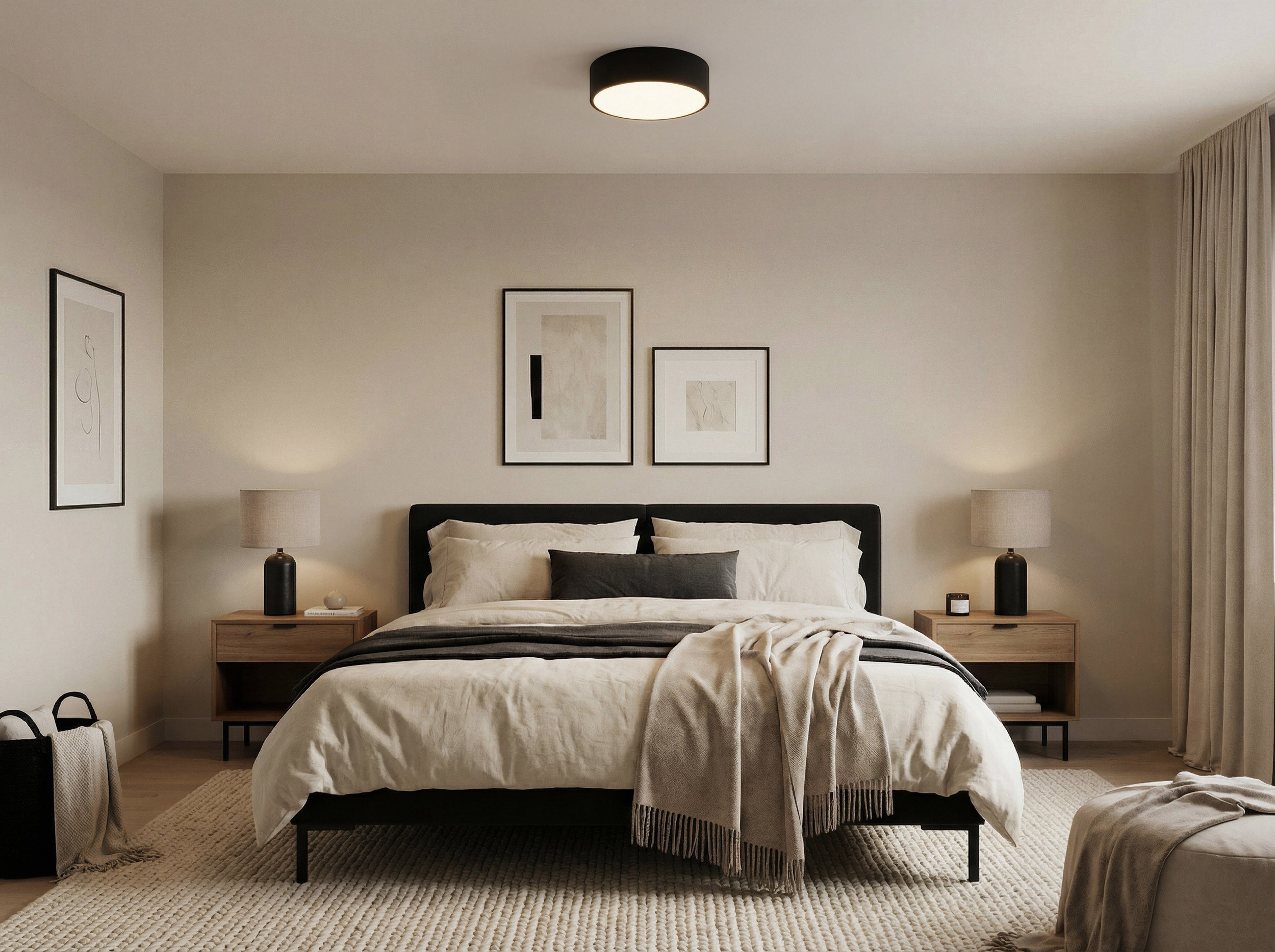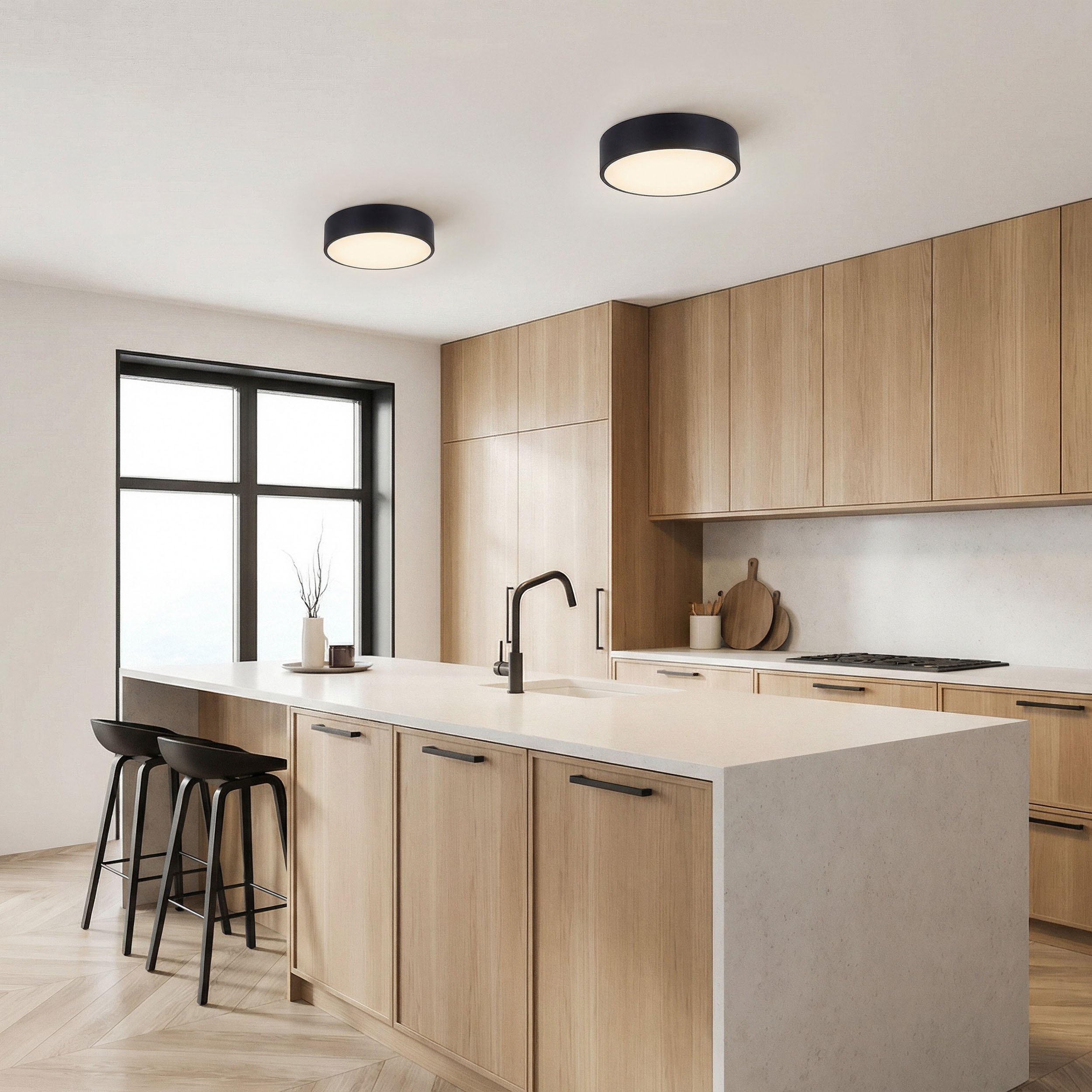 Plafon o tej średnicy może pełnić funkcję głównego oświetlenia w pomieszczeniach średniej wielkości lub elementu wielopunktowego światła. Jego uniwersalny charakter sprawia, że sprawdza się w mieszkaniach, przestrzeniach biurowych i wnętrzach komercyjnych - wszędzie tam, gdzie ważne jest komfortowe, równomierne oświetlenie. Czarna lampa wnosi nowoczesny akcent i dobrze komponuje się z dodatkami charakterystycznymi dla współczesnych aranżacji. Wyjątkowo pasuje do stylów: nowoczesny, minimalistyczny, loft i industrialny, ale odnajdzie się też we wnętrzach eklektycznych, japandi czy modern classic.