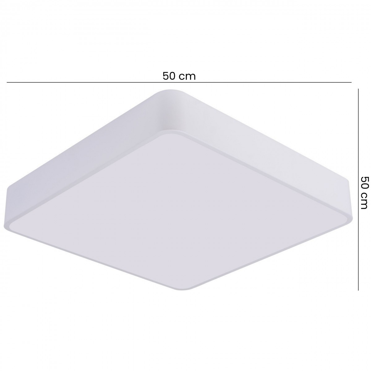 CUBO D50 to nowoczesna lampa sufitowa o kwadratowej formie i jasnym, białym wykończeniu, które pasuje do wielu stylów aranżacyjnych. Model posiada duży format 50 x 50 cm, dzięki któremu doskonale sprawdzi się jako centralne źródło światła nawet w większych pomieszczeniach.