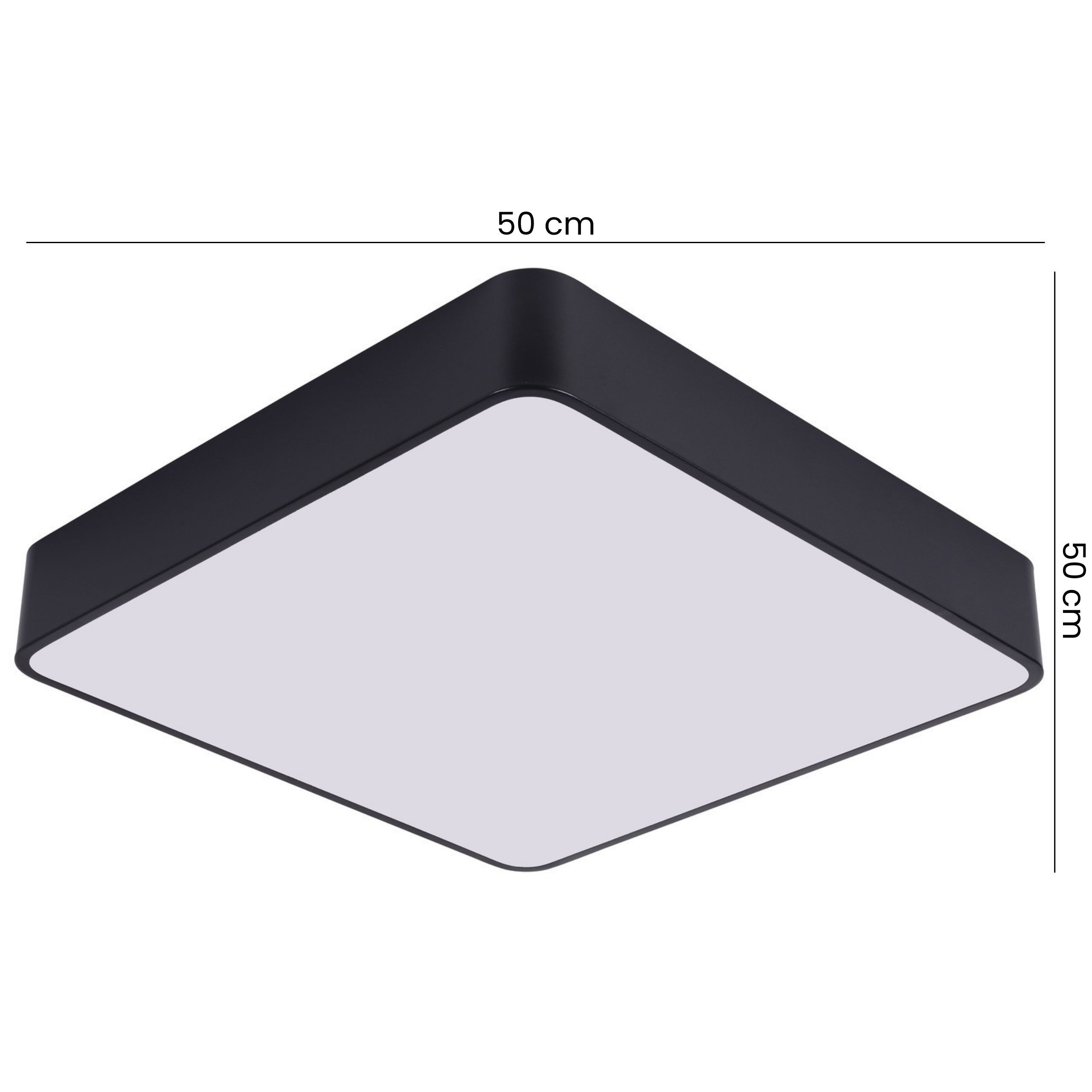 CUBO D50 to nowoczesna lampa sufitowa o kwadratowej formie i czarnym, matowym wykończeniu. Model posiada mleczny panel świetlny, która dobrze kontrastuje ciemną obudową, nadając jej nowoczesnego charakteru, doskonale wpisującego się w różne aranżacje. Format 50 x 50 cm sprawia, że plafon doskonale prezentuje się w przestronnych pomieszczeniach.