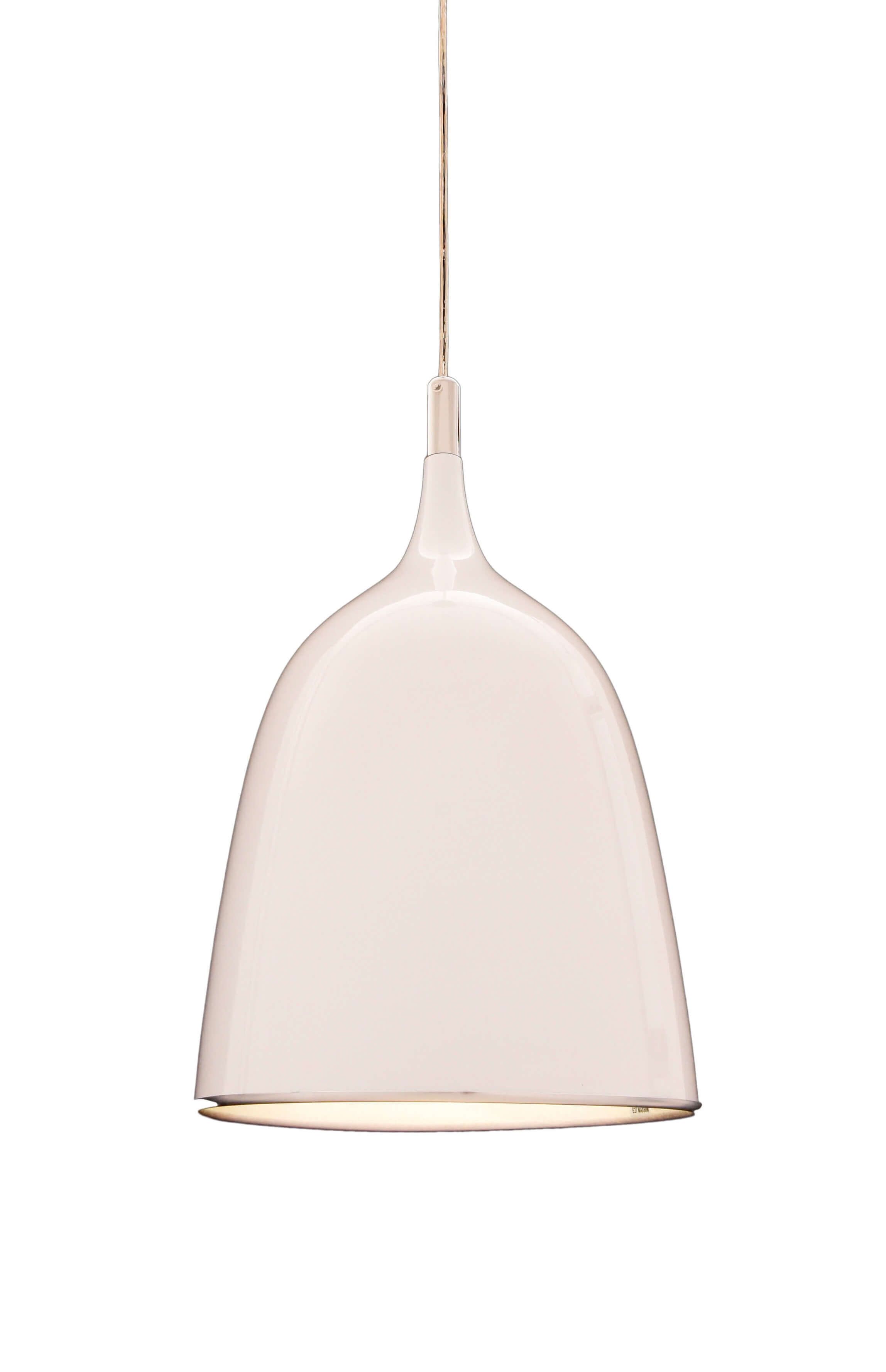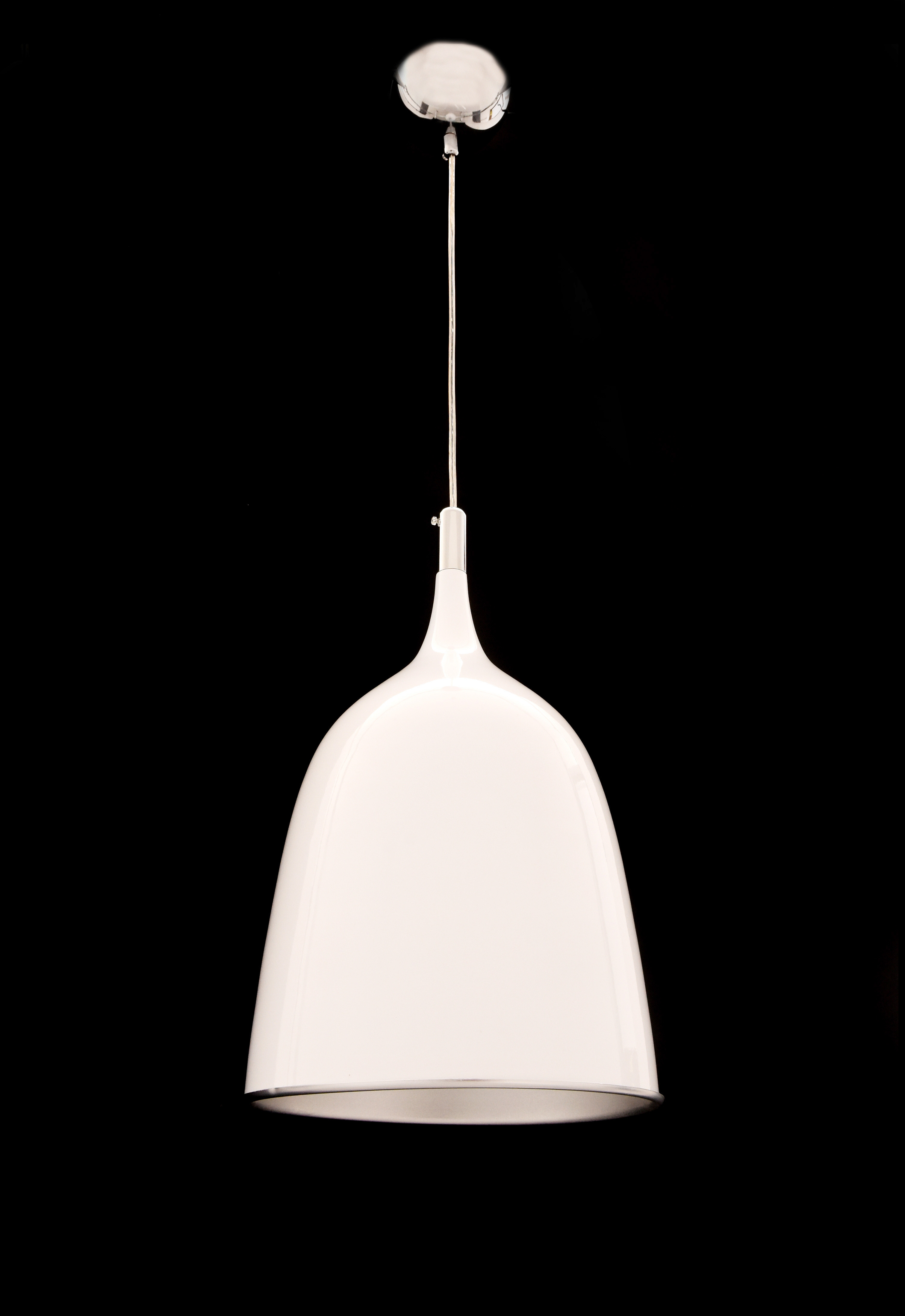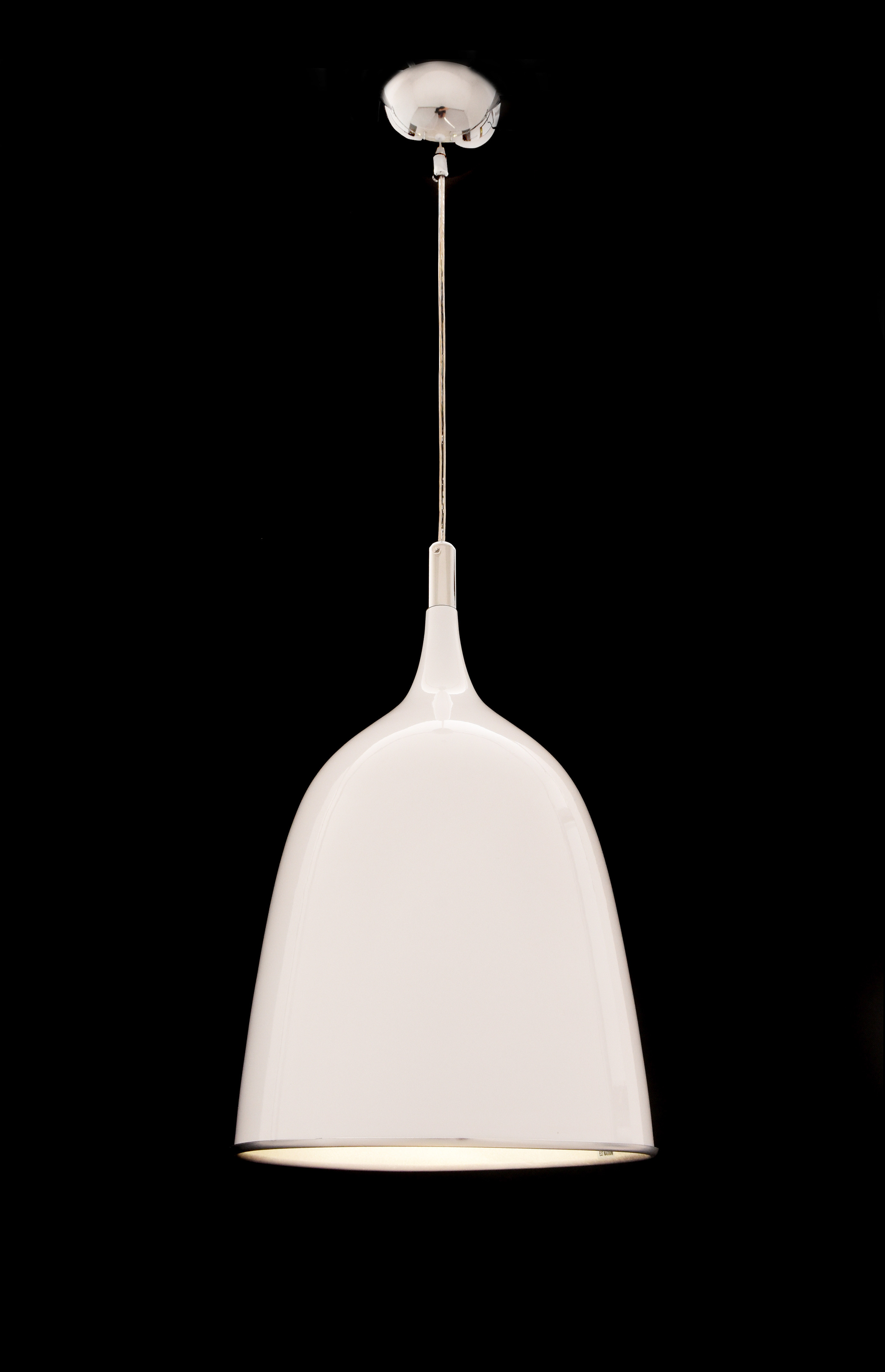 W serii BELTONE charakterystyczny jest klosz, który jednocześnie jest głównym punktem lampy wiszącej. Składa się ona właściwie ze wspomnianego klosza w białym kolorze, o subtelnym zdobieniu w postaci srebrnego paska u dołu, oraz z przezroczystego kabla i oryginalnej podsufitki. Dodatkową cechą klosza, która nie umknie niczyjej uwadze, jest jego ciekawy kształt – niezwykle wąski u góry, z nagłym przejściem do szerokiego dołu. Całość posiada regulowaną wysokość, dzięki której lampa pozwala dopasować się do wnętrza.