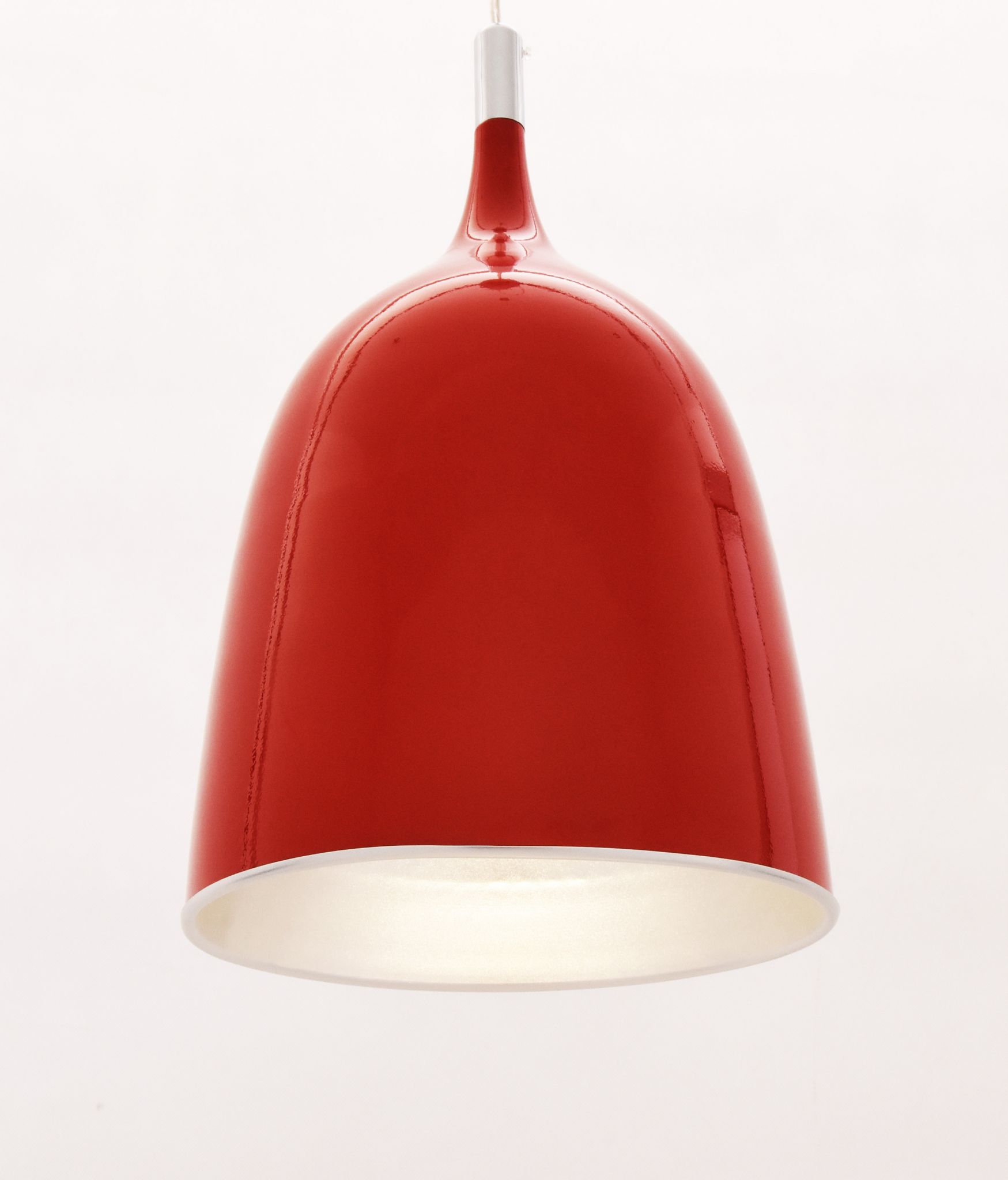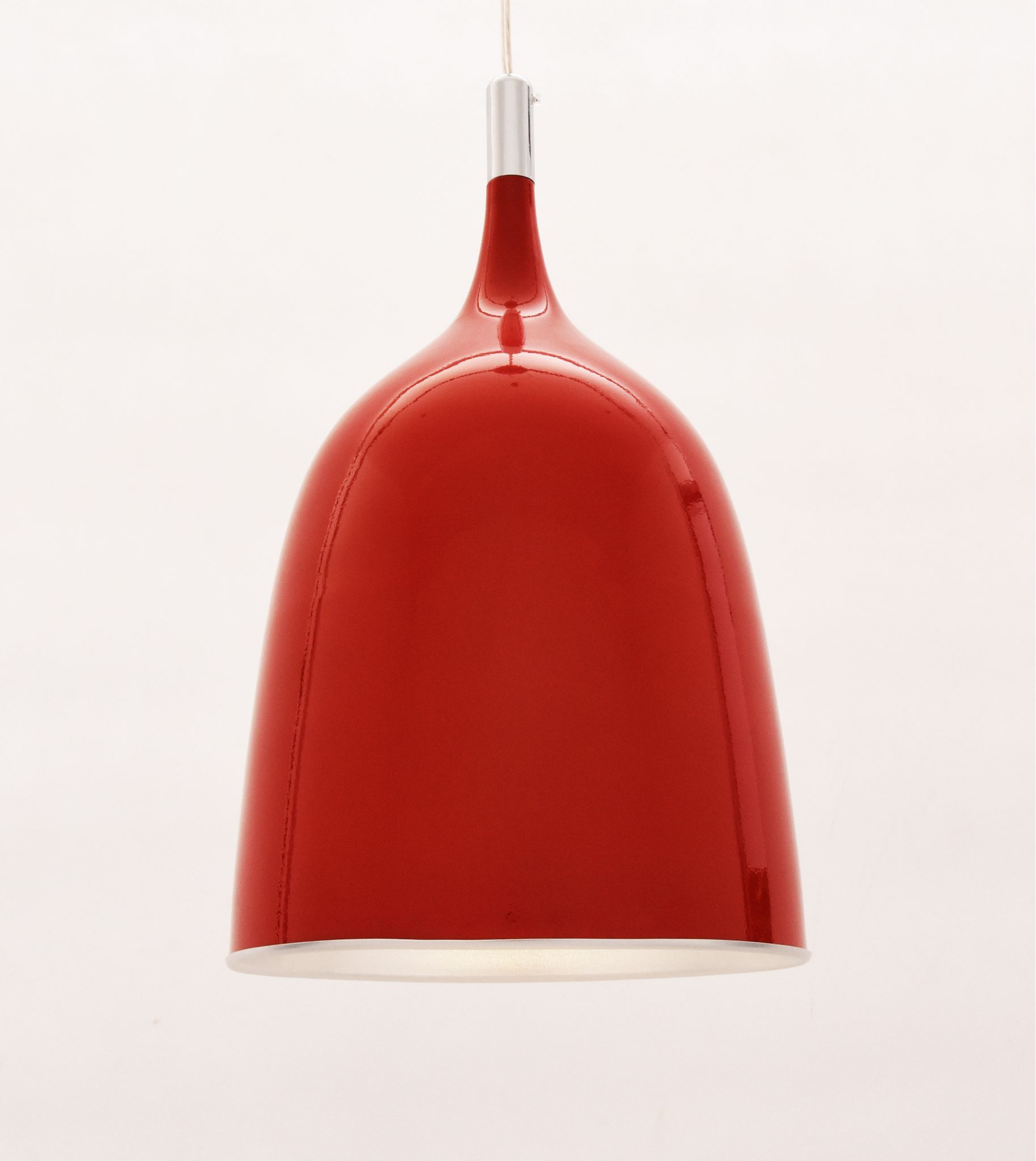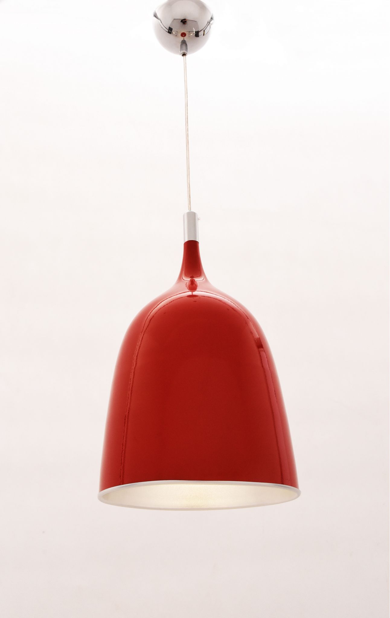 Metal oraz aluminium użyte do stworzenia lampy wiszącej BELTONE genialnie komponują się z jej błyszczącą, czerwoną oprawą. Styl nowoczesny zauważalnie przebija się przy pomocy ciekawej bryły klosza oraz energetycznej kolorystyki. Lampa będzie odpowiednim dodatkiem do salonu, sypialni, a także kuchni i jadalni.