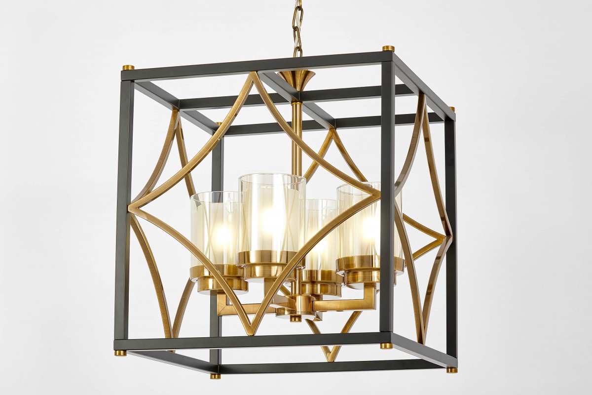 Fantazyjne zastosowanie geometrii i luksusowej kolorystyki czyni z lampy wiszącej QUADRATO, wykonanej w stylu loft, doskonały model oświetlenia do gabinetów, biur i restauracji. Umieszczone wewnątrz kwadratowej, czarno-mosiężnej oprawy cztery klosze, będą pełnym wdzięku źródłem światła i zachwycającą ozdobą sufitu.