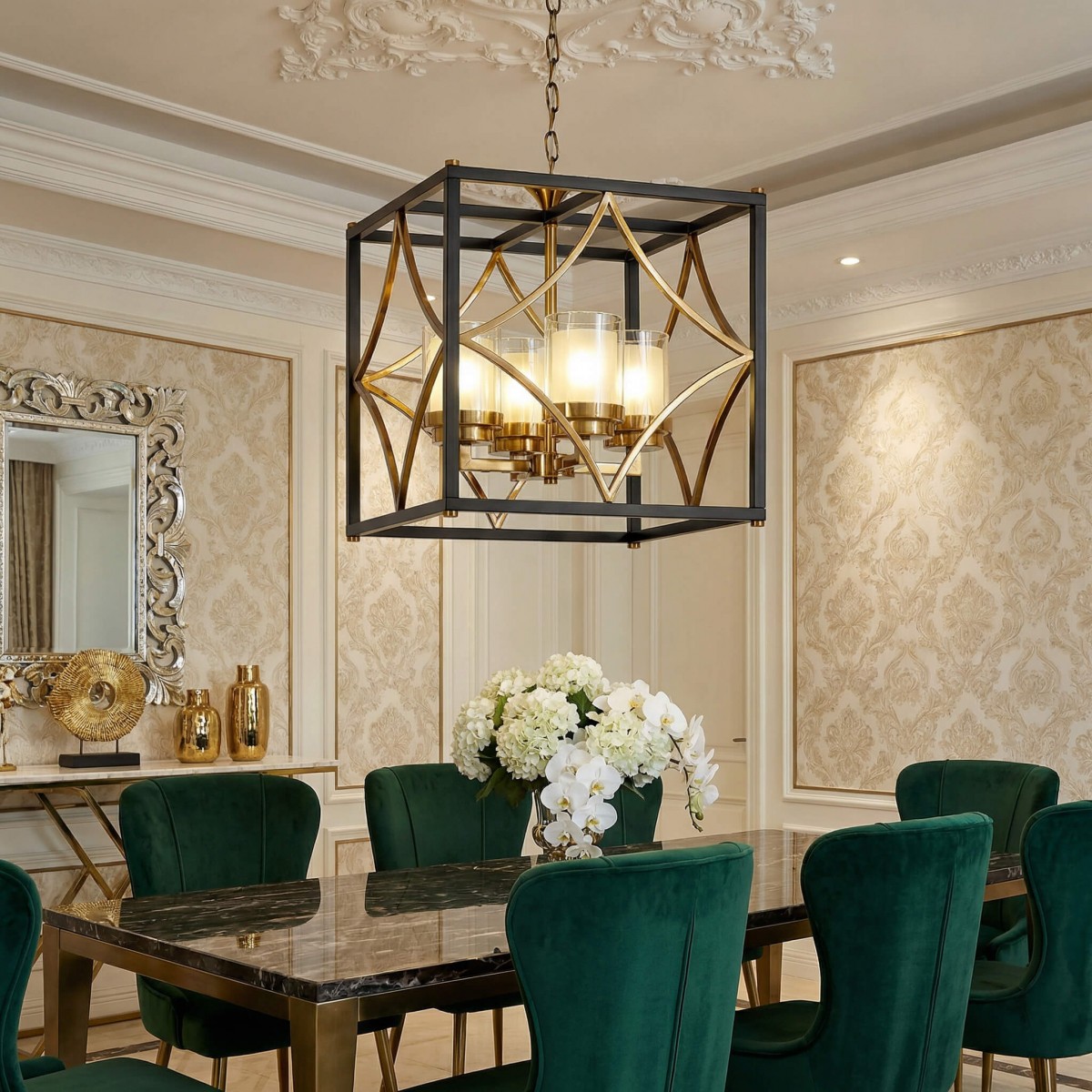 Lampa wisząca QUADRATO doskonale sprawdzi się nad stołem w jadalni, w salonie lub w eleganckim holu. To propozycja do wnętrz loftowych, modern classic i glamour, gdzie pełni rolę centralnego punktu aranżacji i przyciąga uwagę swoją formą oraz światłem.