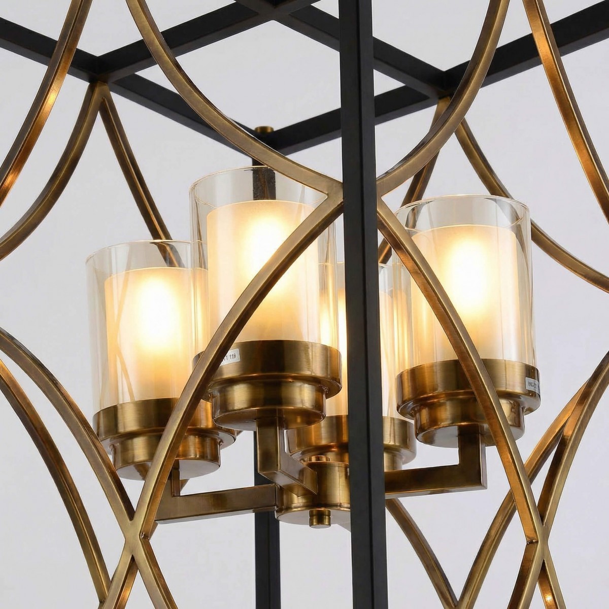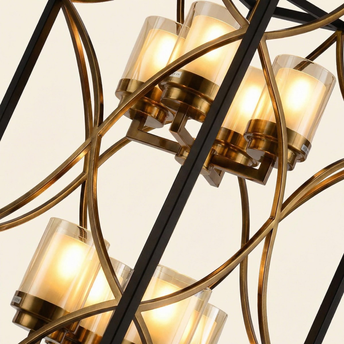 Matowa czerń metalowej konstrukcji została zestawiona z mosiężnymi akcentami, które wprowadzają do projektu ciepło i luksusowy charakter. Szklane cylindry subtelnie rozpraszają światło, tworząc nastrojową, przyjemną iluminację. Całość zachwyca jakością wykonania i dbałością o każdy detal.