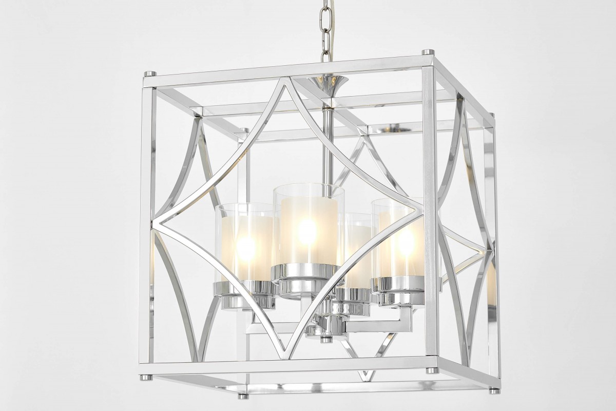 Kolekcja QUADRATO ma w sobie szyk i klasę, którą idealnie widać w kolorze oraz kształcie oświetlenia, a także zastosowanej kompozycji całych produktów. Lampa wisząca sama w sobie jest dekoracją, w głównej mierze dzięki kreatywnemu projektowi konstrukcji zewnętrznej. Bryła lampy bazuje na metalowej klatce w formie sześcianu, w którego ściany wtopiono wgięte, metalowe romby. Chromowana oprawa dopasowuje się do równie chromowanych podstaw pod szklane klosze-tuby umieszczone we wnętrzu lampy.