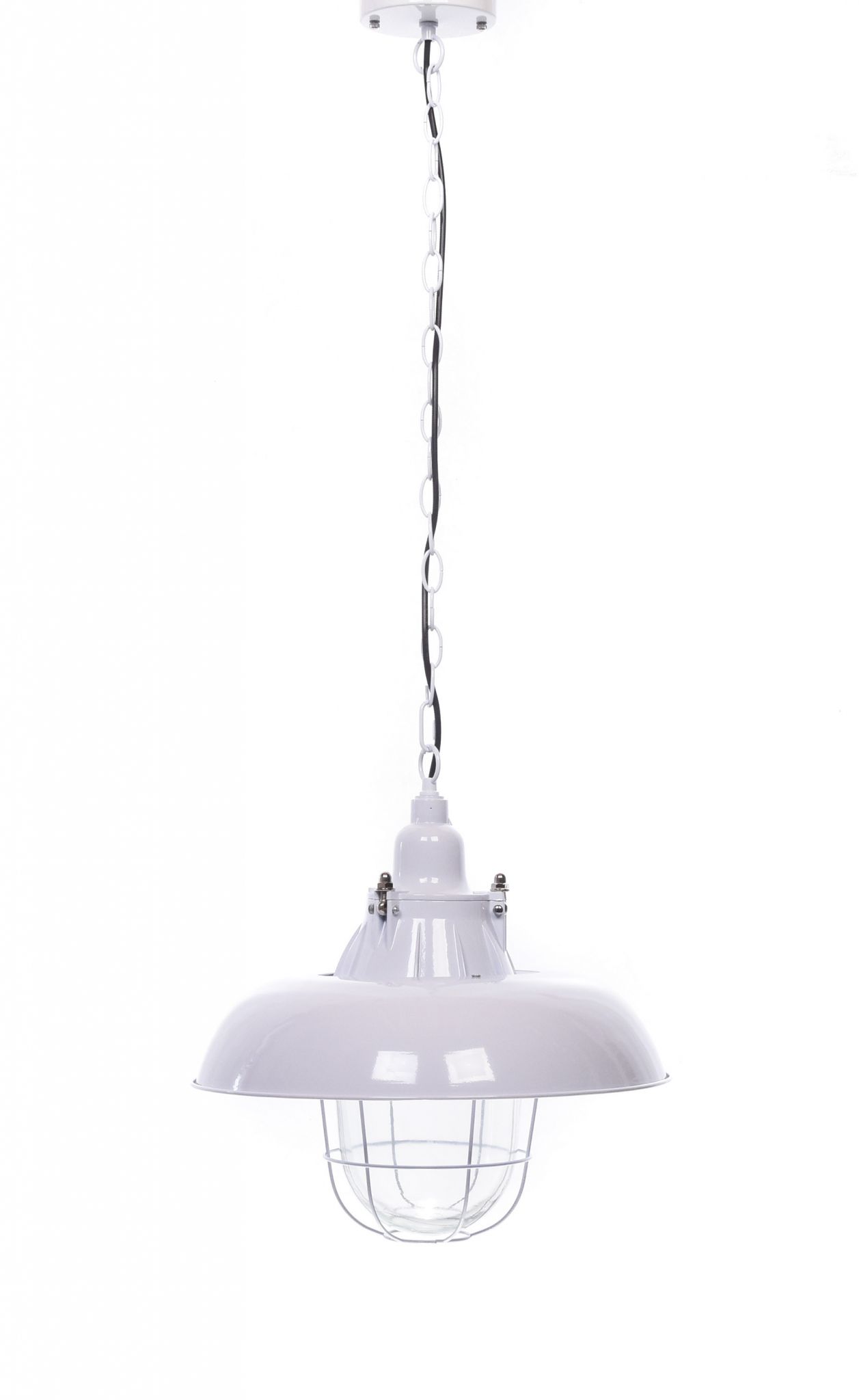 Lampy wiszące z kolekcji PRODDI to prostota pod względem wzornictwa i kolorystyki, Jeden kolor zarezerwowany jest dla całej lampy, nie ma tu miejsca na kontrasty, mocne przejścia kolorów. Cechą szczególną jest tutaj odsłonięta żarówka, która nadaje klasyczny charakter oświetlenia przemysłowego. Biała oprawa lampy jest delikatna, łączy w sobie metalową powłokę, a pod nią znajduje się szklany klosz osłonięty cienką kratą. Lampa posiada jeden punkt świetlny o gwincie E27. Zestaw nie zawiera żarówki - możną ją dokupić w każdym większym markecie.