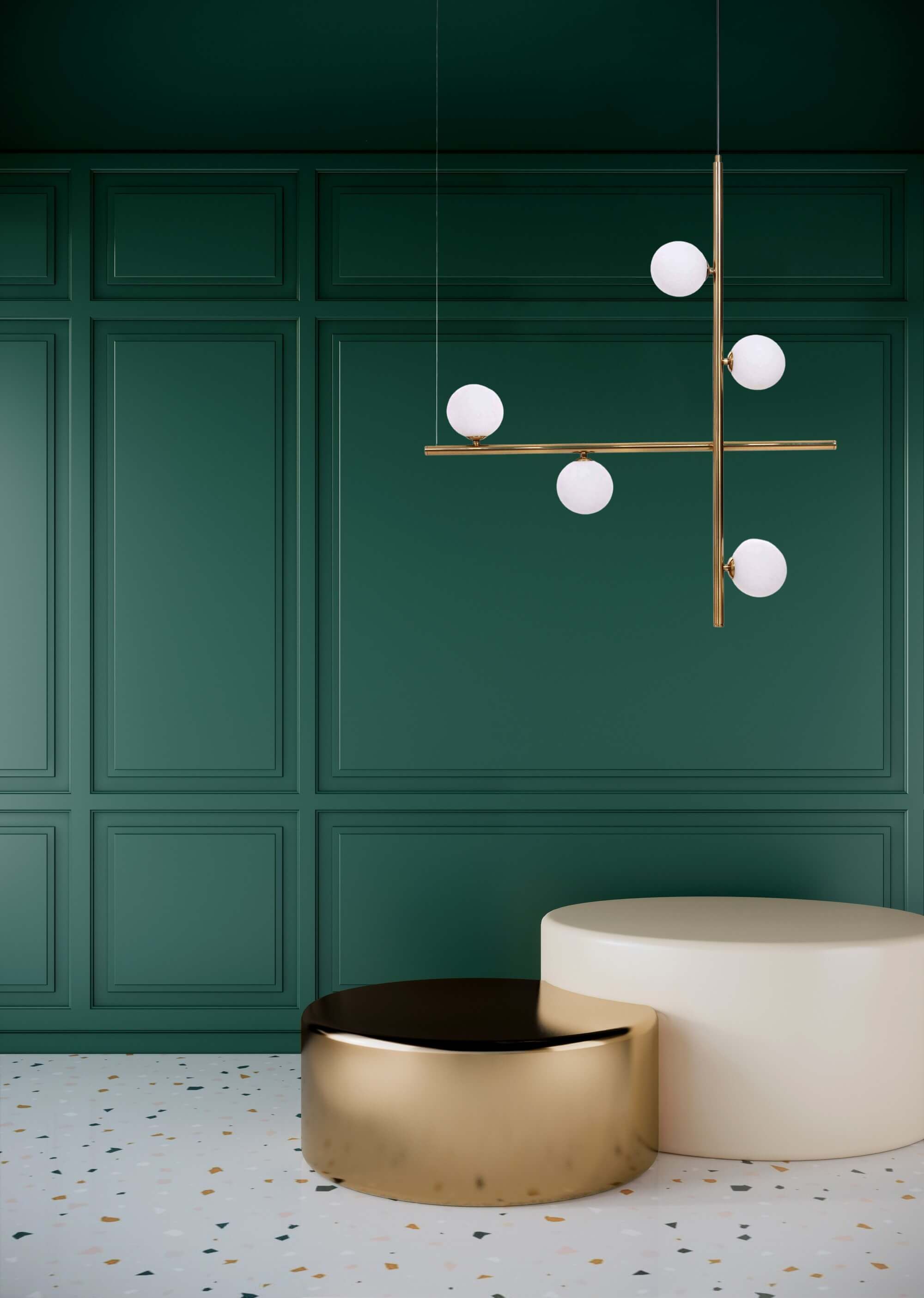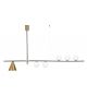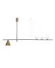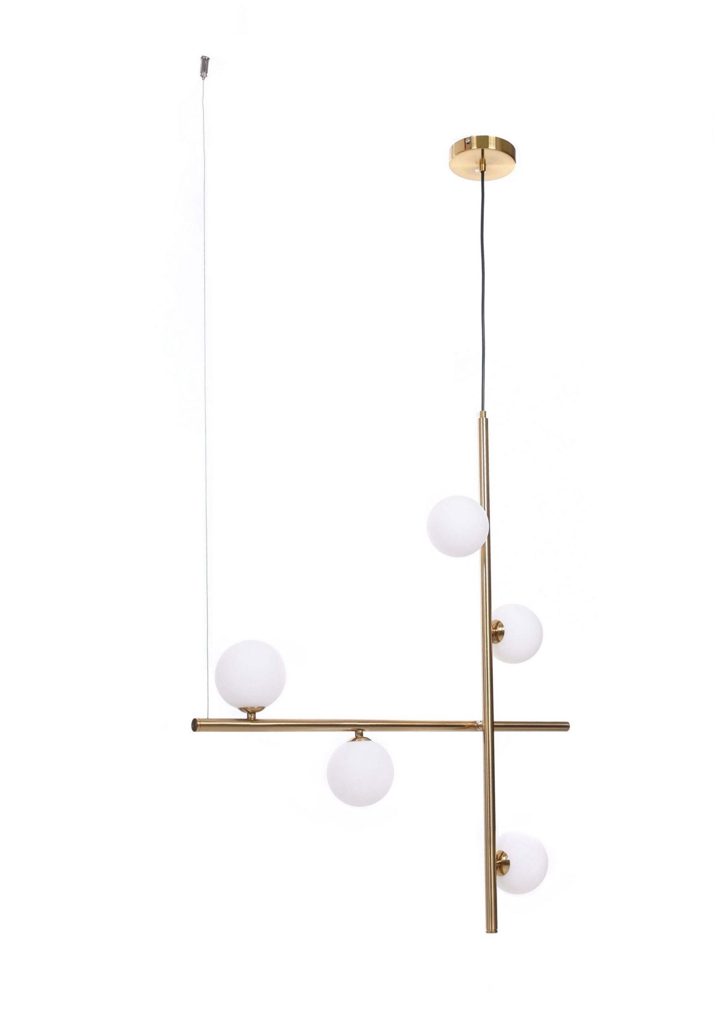 Pomysłowość oraz innowacyjność konstrukcji lampy wiszącej RIANZA W5 widać w każdym calu jej postaci, począwszy od surowości kompozycji, ograniczonych do minimum zdobień i elementów oraz pięknym i eleganckim odcieniu mosiężnej oprawy. Pięć źródeł światła osłoniętych szklanymi, białymi kloszami doda blasku modernistycznemu salonowi i reprezentacyjnej klatce schodowej.