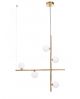 RENZO jest kolekcją o nieoczywistym wyrazie – na pierwszy rzut oka zaskakuje skromnością konstrukcji, choć po głębszej analizie widać tutaj wpływy industrialnego podejścia do komponowania elementów aranżacji oraz nowoczesnych rozwiązań i połączeń kolorystycznych. Lampa sufitowa to połączenie dwóch prostych drążków o niesymetrycznym rozstawie, połączonych mosiężną, podłużną złączką. Pionowe ramię kończy się u góry mosiężną podsufitką w kształcie tuby, natomiast poziome jest podzielone na dwie strefy. Krótsza to miejsce, gdzie umieszczono metalowy stożek, pełniący rolę pojedynczego źródła światła z otworem u dołu, roznoszącego sporą ilość światła po pomieszczeniu, oraz dłuższą, na której końcu umieszczono rząd trzech białych kul, stanowiących przeciwwagę kolorystyczną oraz funkcjonalną dla metalowego klosza. Stabilizację lampy wiszącej zapewnia linka umieszczona równolegle do pionowego ramienia lampy. Wysokość lampy można dopasować do potrzeb, dzięki zastosowaniu dwóch rurek, współtworzących pionowe ramię lampy.